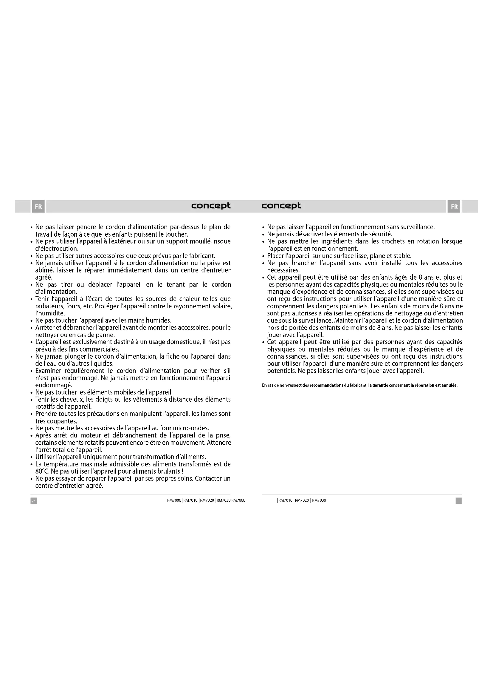 - Ne pas permettre de laisser utiliser l’appareil comme un jouet.74 75 FRFR RM7000