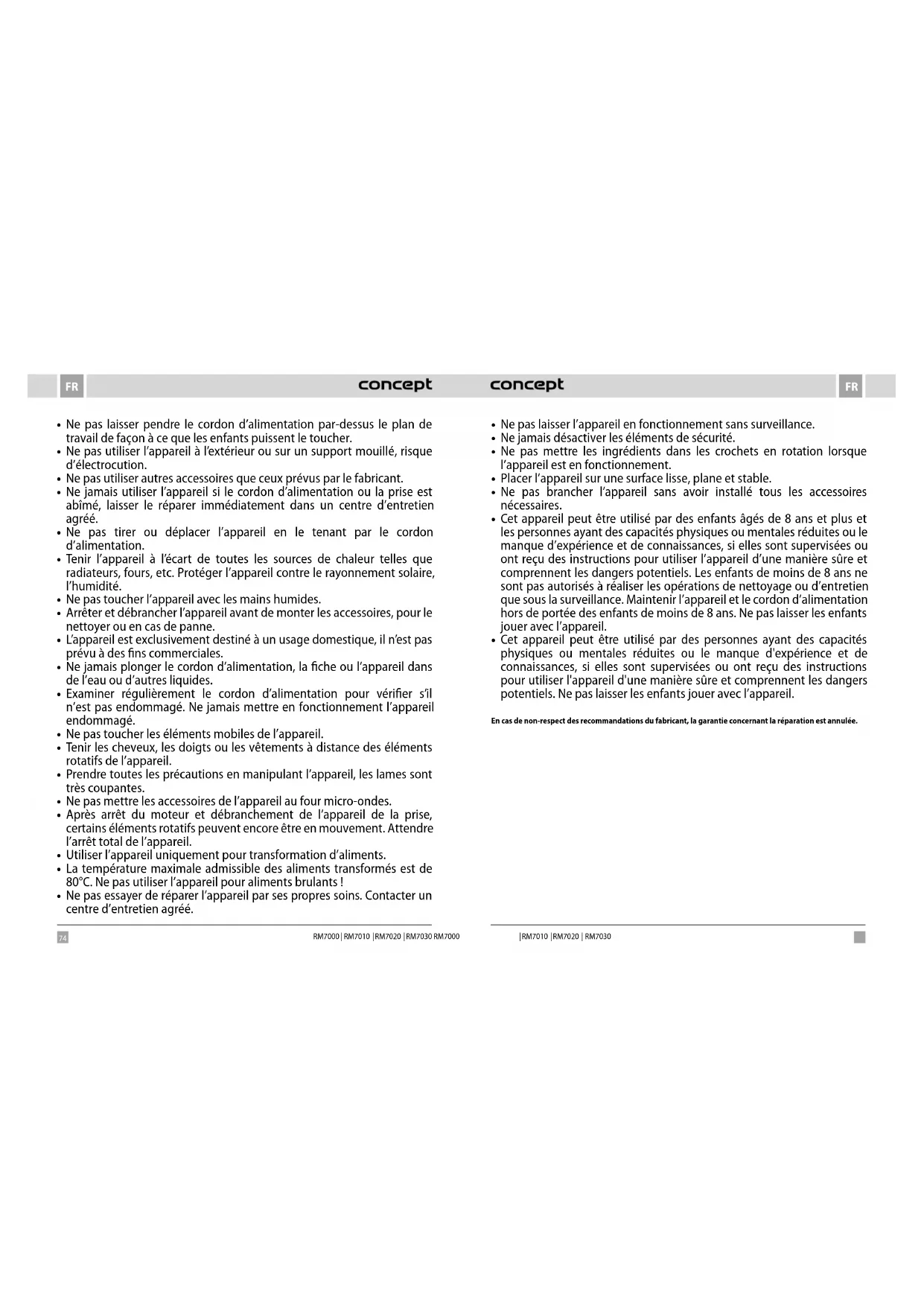 - Ne pas permettre de laisser utiliser l’appareil comme un jouet.74 75 FRFR RM7000