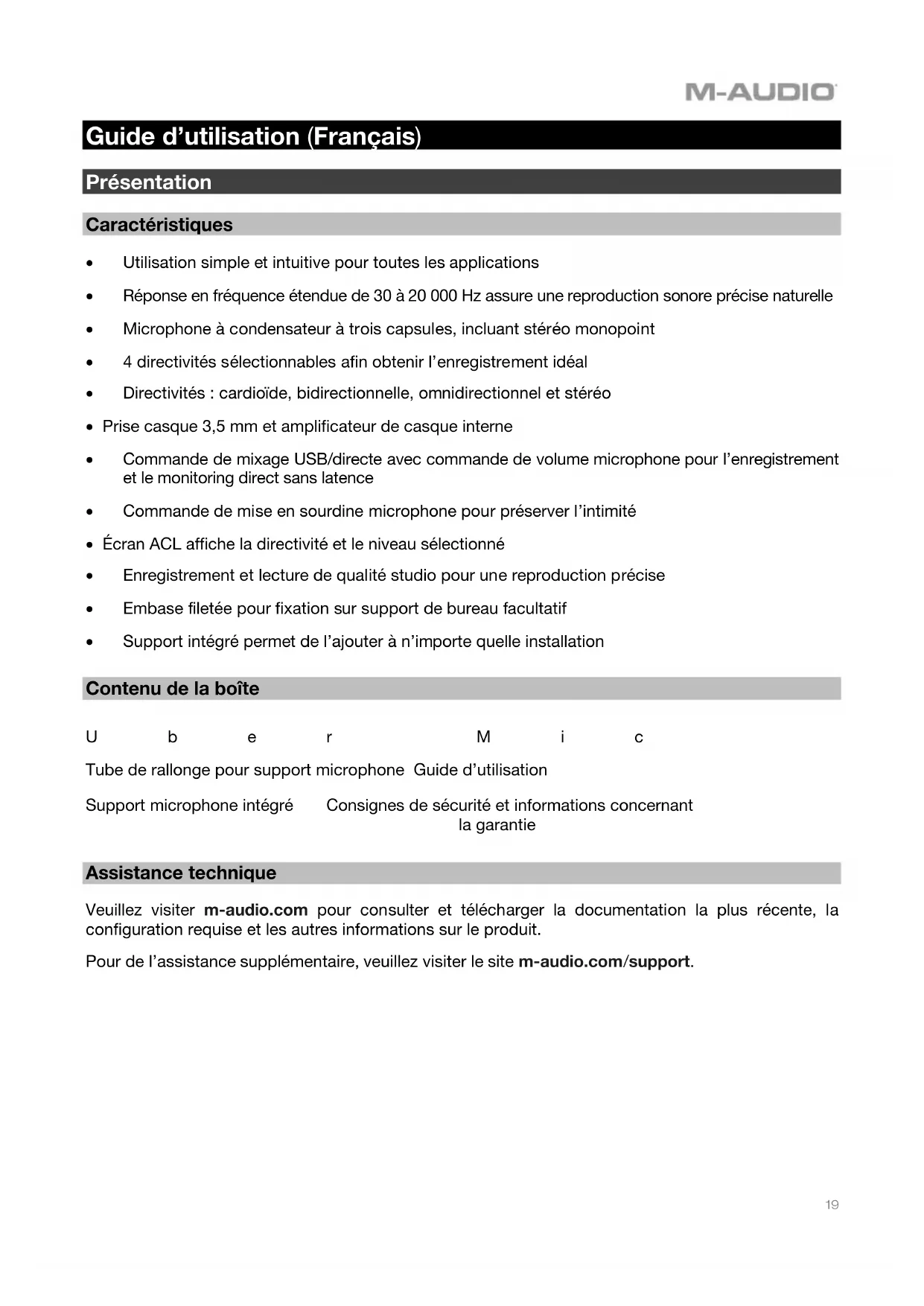 Téléchargez la notice de votre Microphone au format PDF gratuitement ! Retrouvez votre notice Uber Mic - M-AUDIO et reprennez votre appareil électronique en main. Sur cette page sont publiés tous les documents nécessaires à l'utilisation de votre appareil Uber Mic de la marque M-AUDIO.