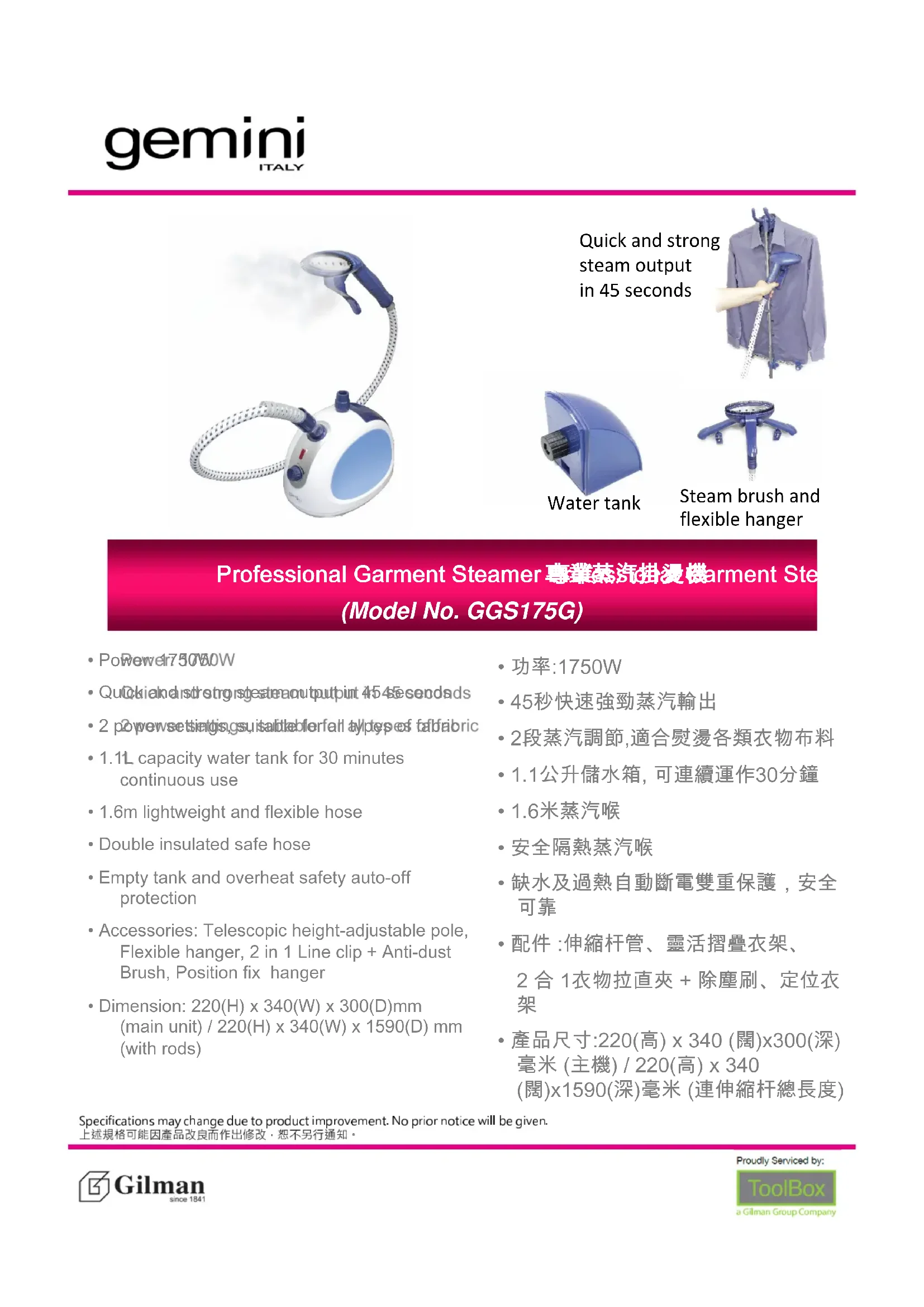 GGS175G - Nettoyeur à vapeur GEMINI - Notice d'utilisation et mode d'emploi gratuit
