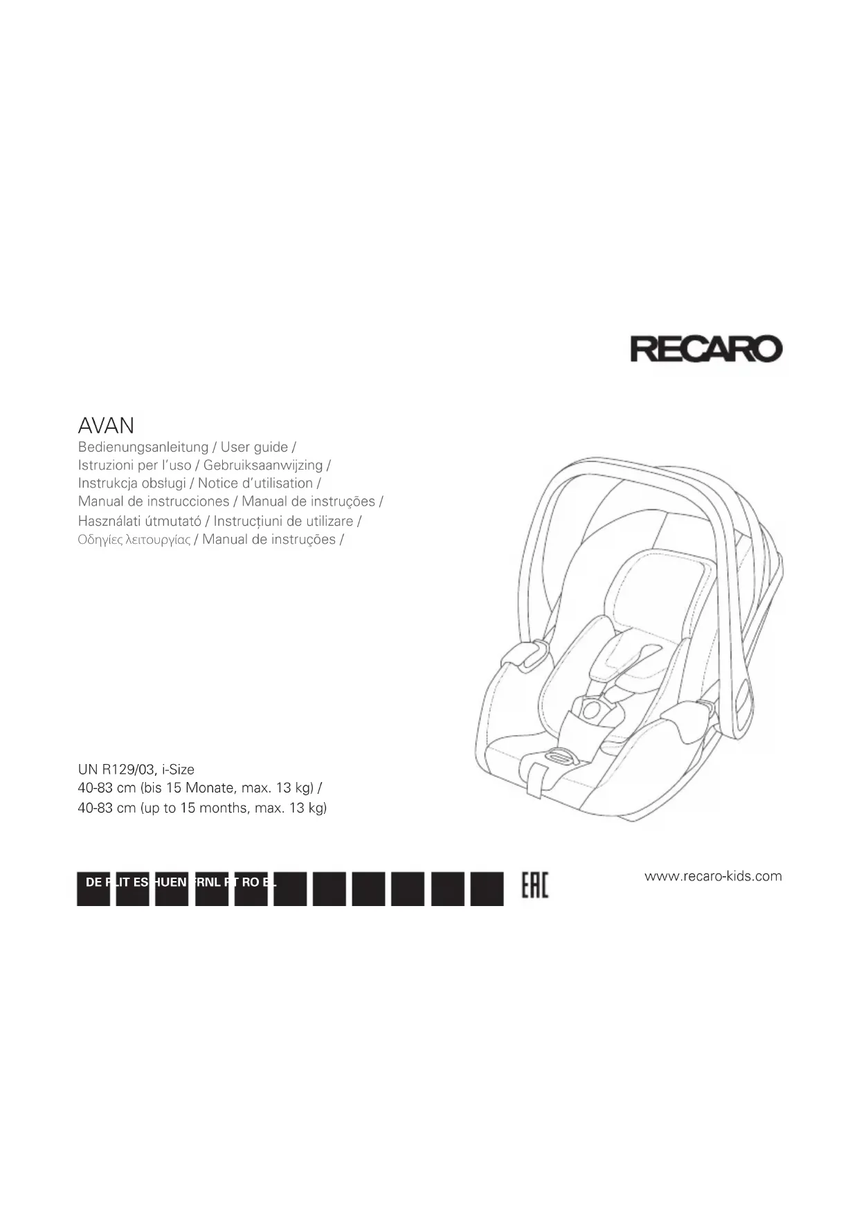 Retrouvez gratuitement la notice de l'appareil Avan RECARO au format PDF.