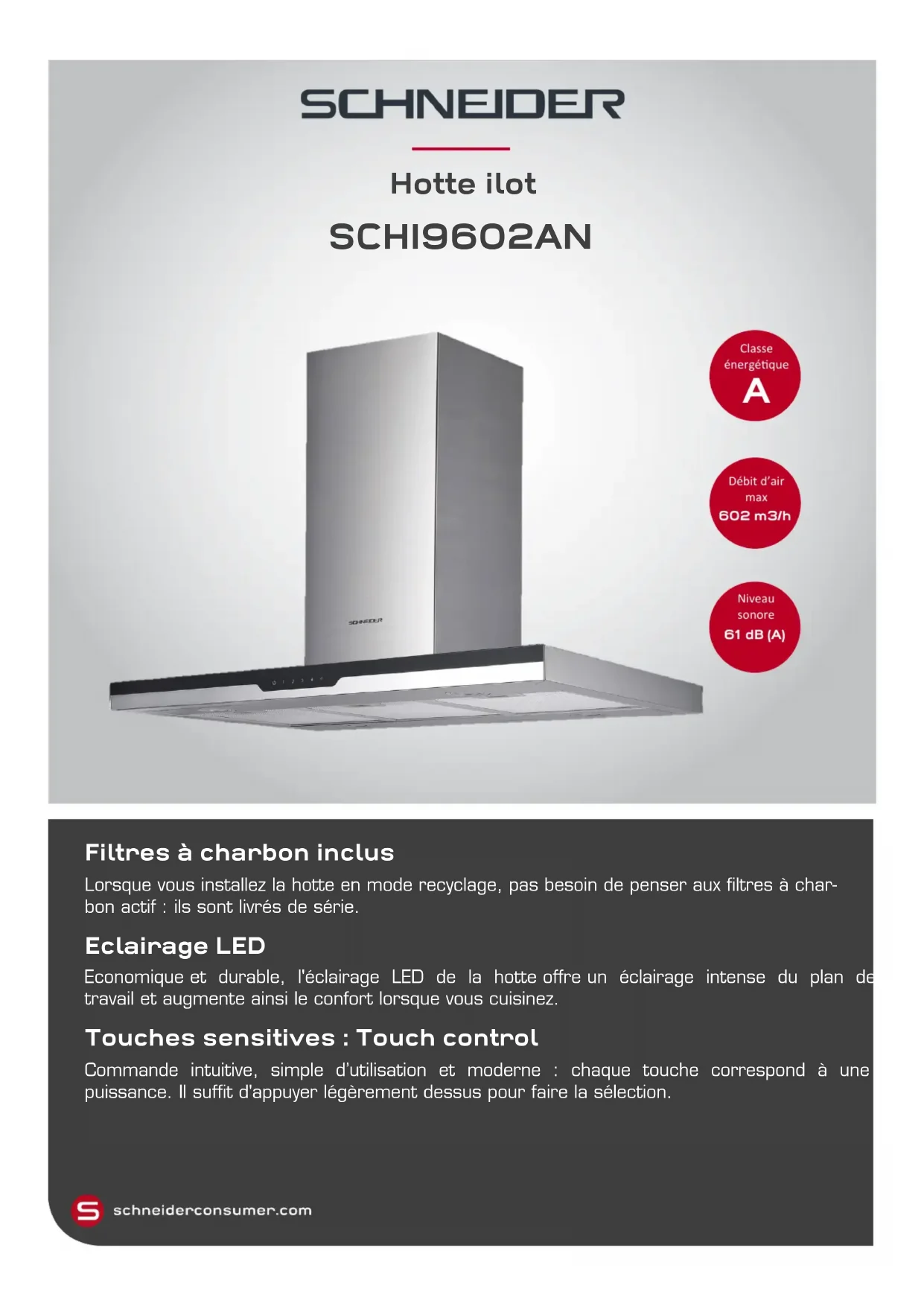 SCHI9602AN - Hotte SCHNEIDER - Notice d'utilisation et mode d'emploi gratuit