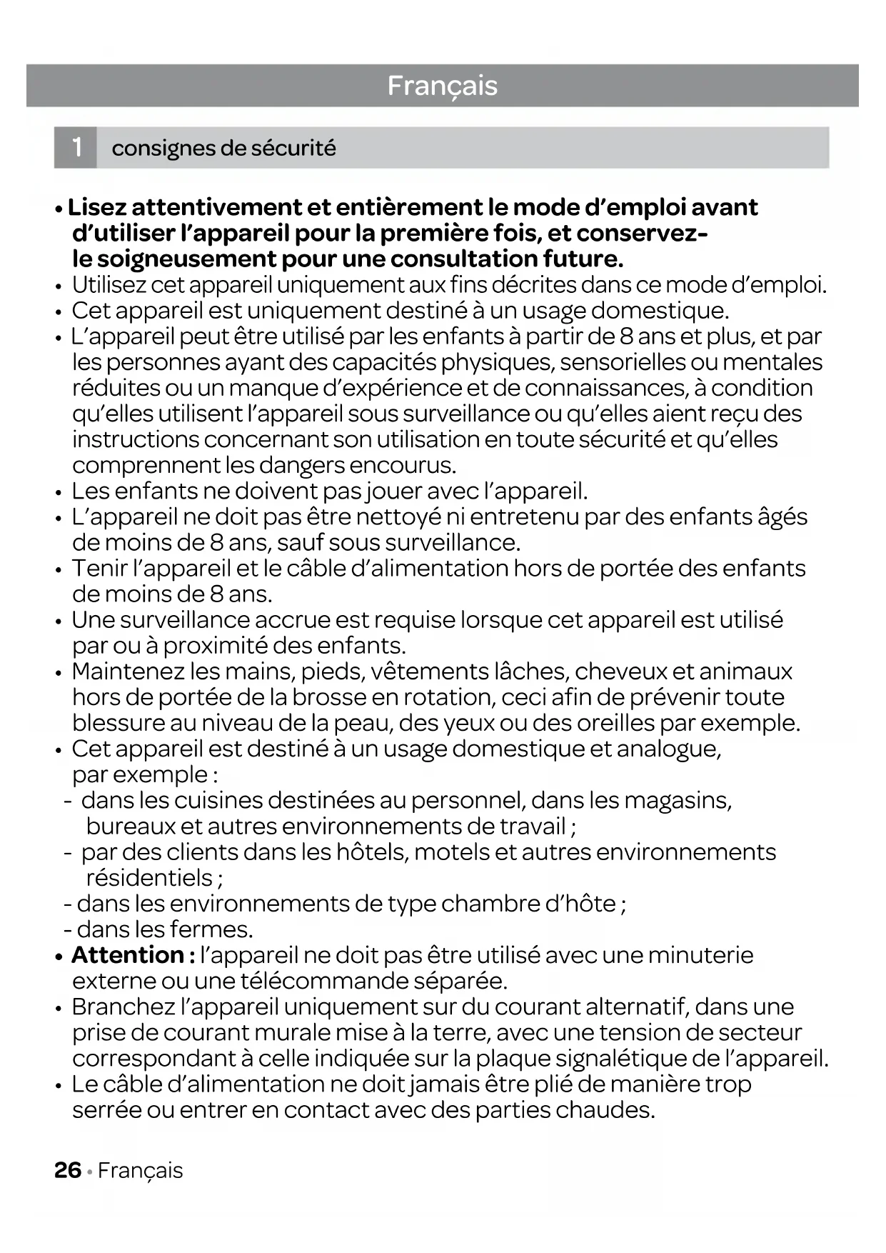 - Cet appareil est uniquement destiné à un usage domestique.
