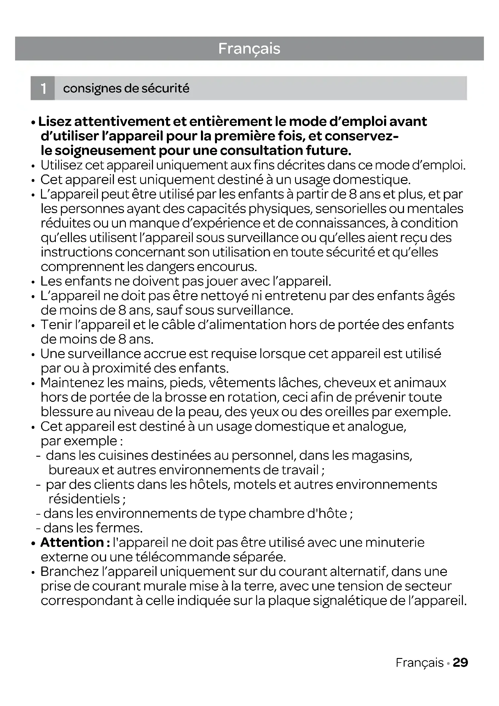 - Cet appareil est uniquement destiné à un usage domestique.