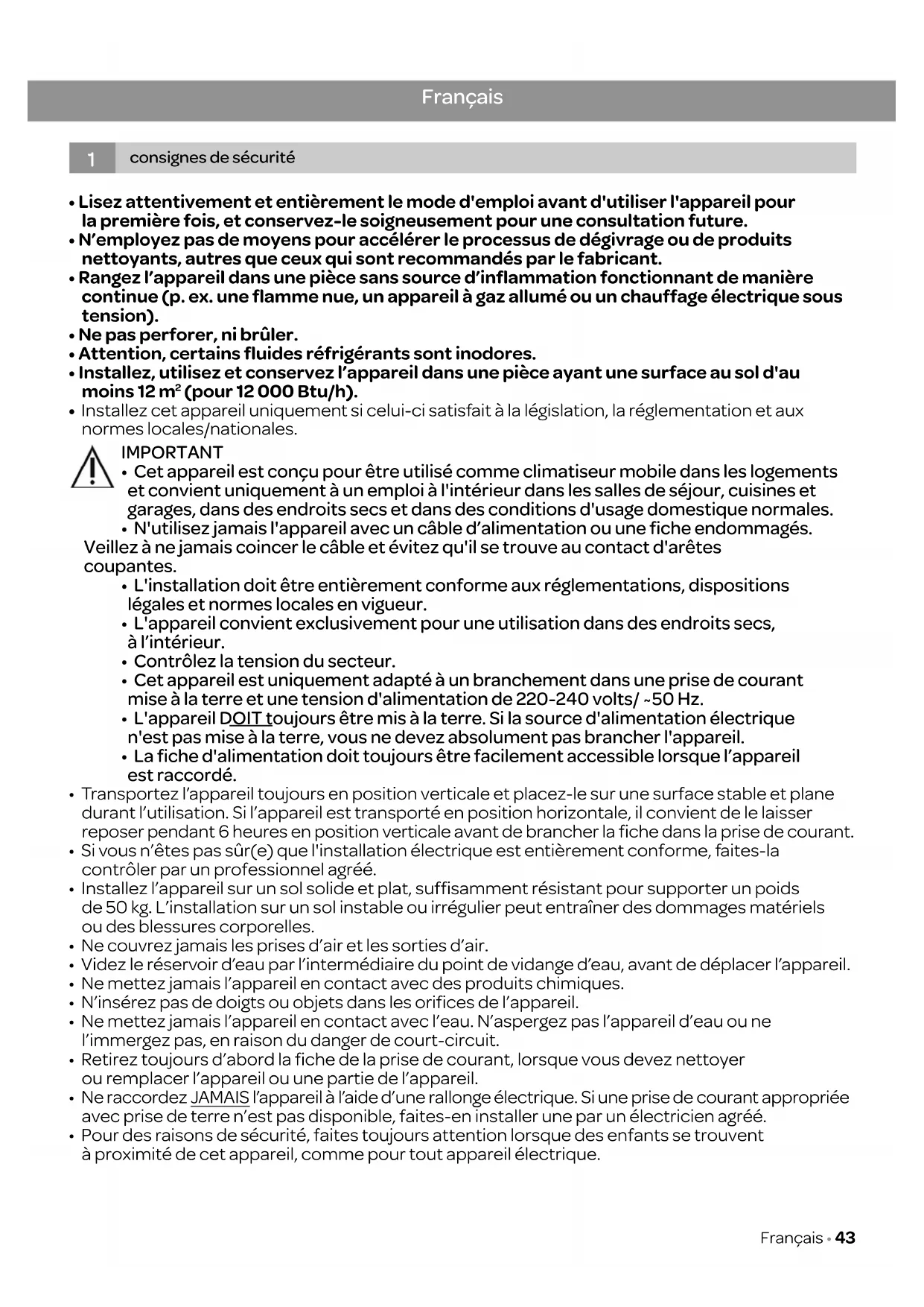 1. consignes de sécurité page 43