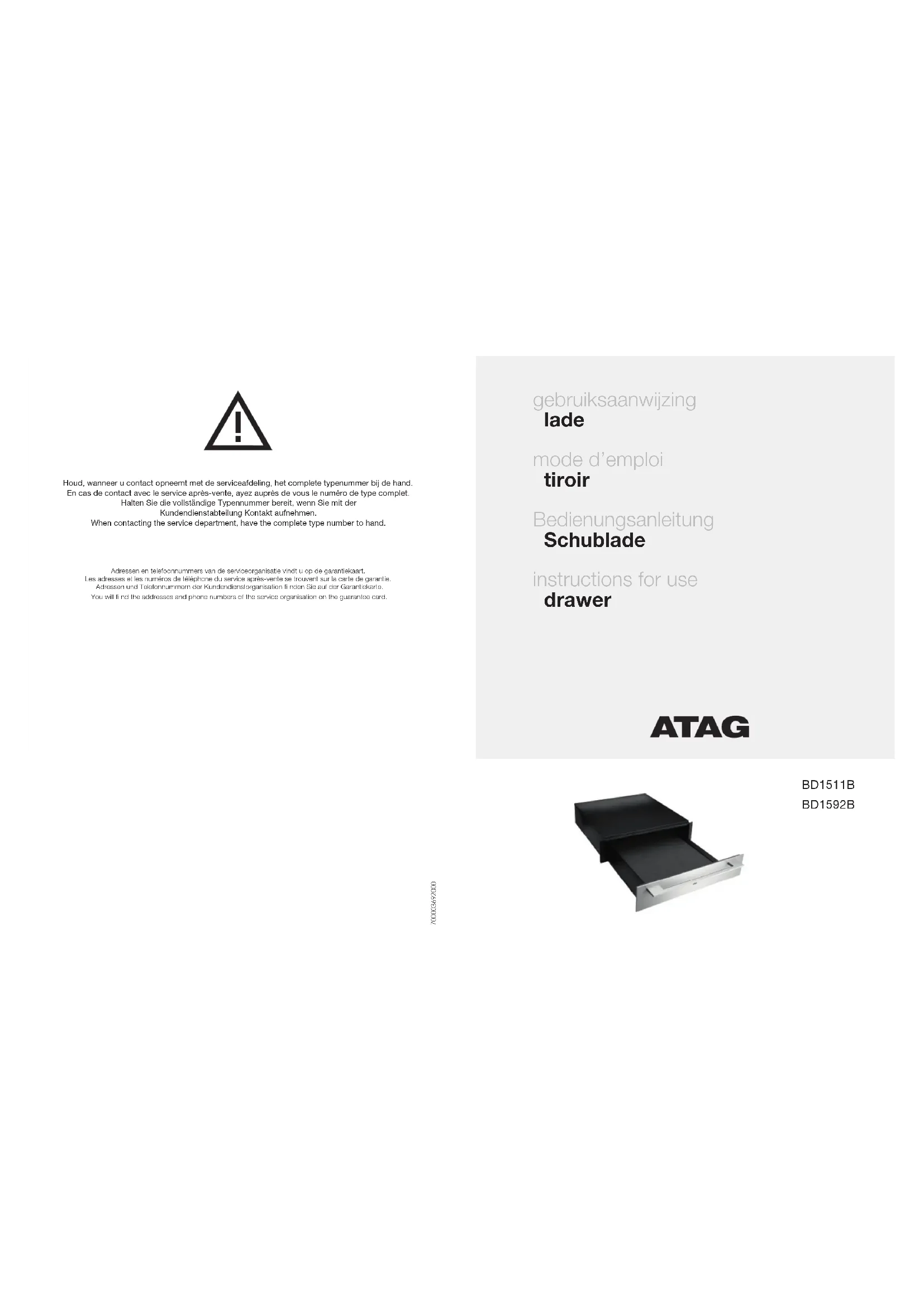 Retrouvez gratuitement la notice de l'appareil BD1592B Atag au format PDF.