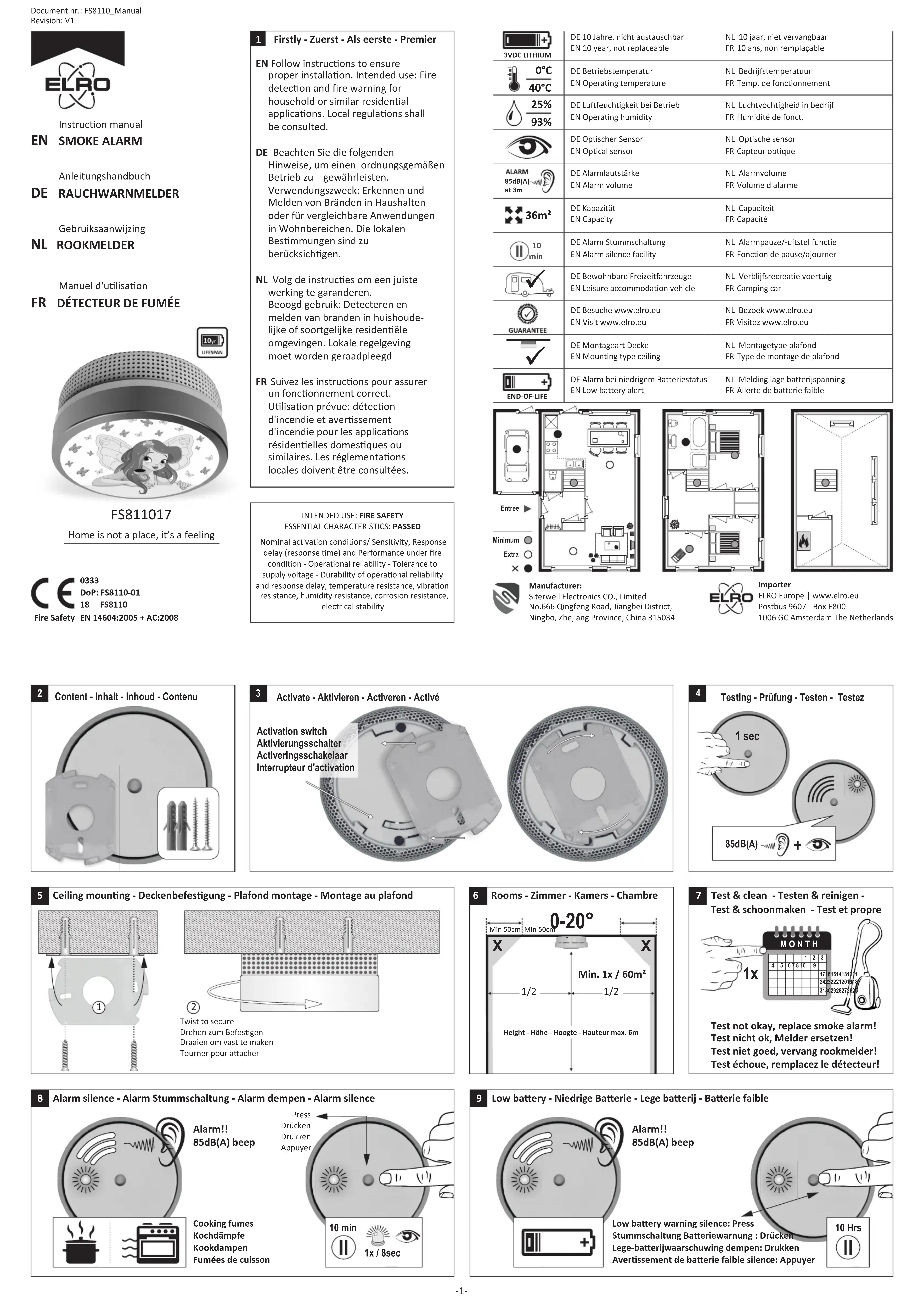 Retrouvez gratuitement la notice de l'appareil FS811017 ELRO au format PDF.