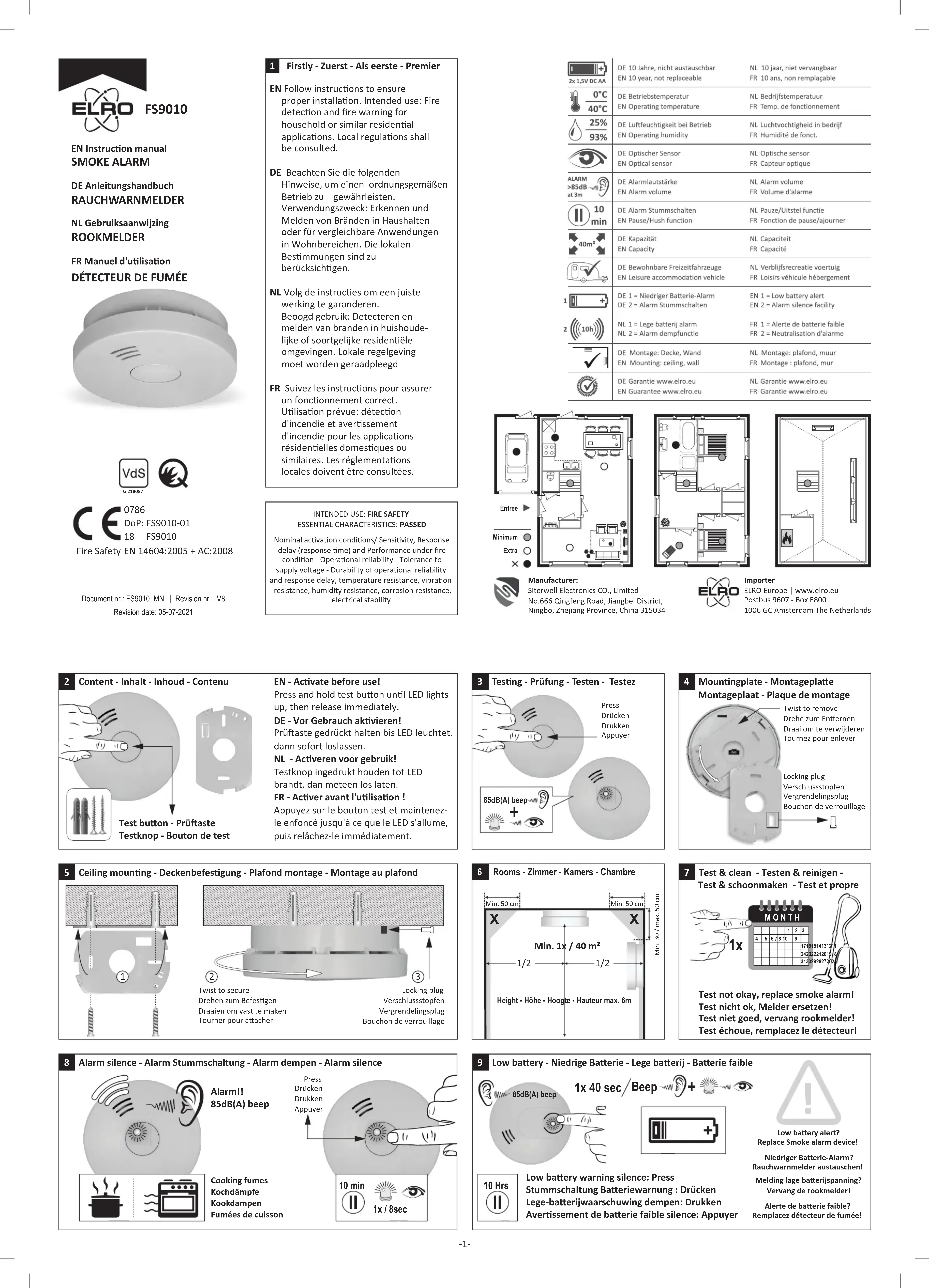 FS901011 - Détecteur de fumée ELRO - Notice d'utilisation et mode d'emploi gratuit