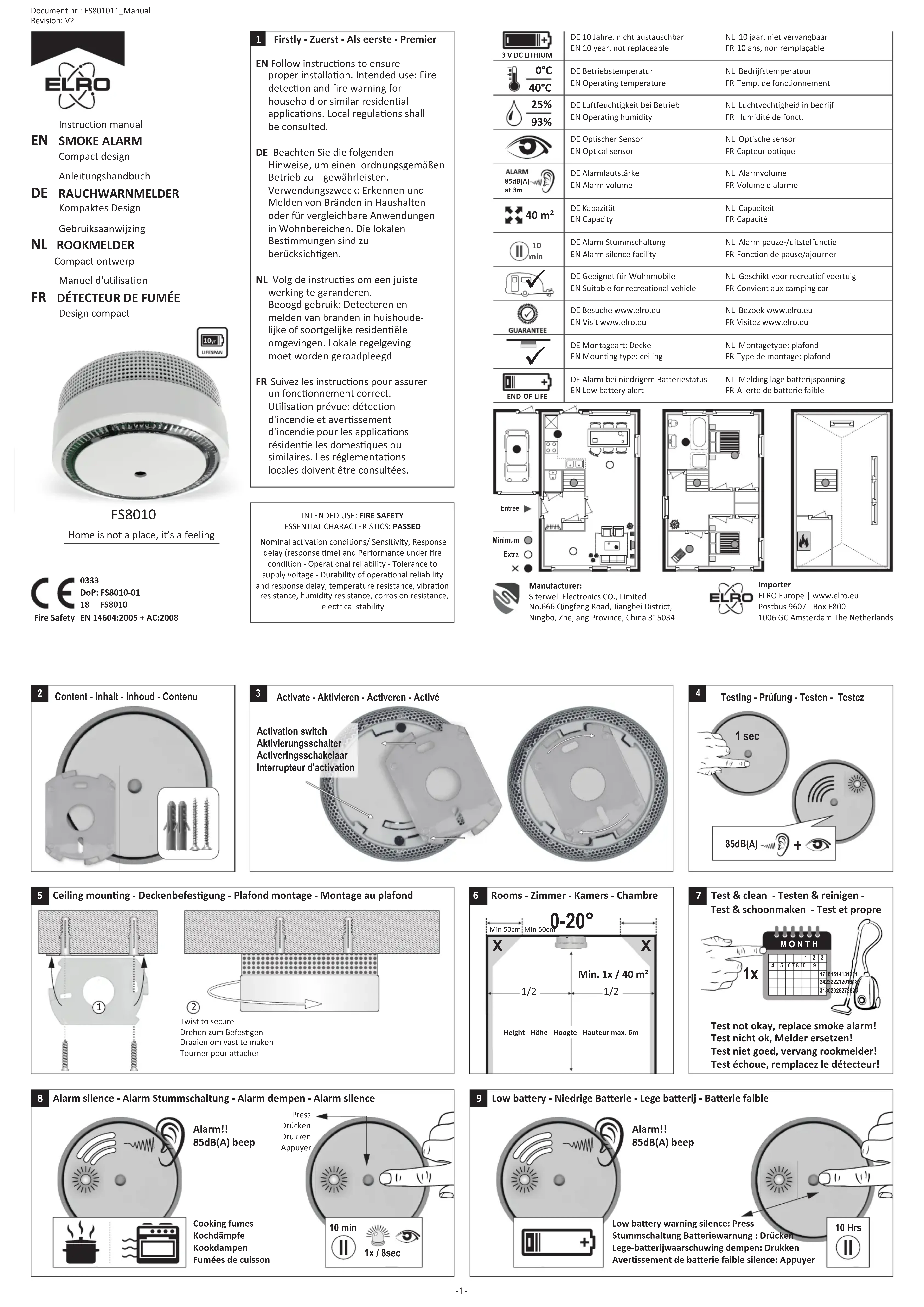 FS801011 - Détecteur de fumée ELRO - Notice d'utilisation et mode d'emploi gratuit