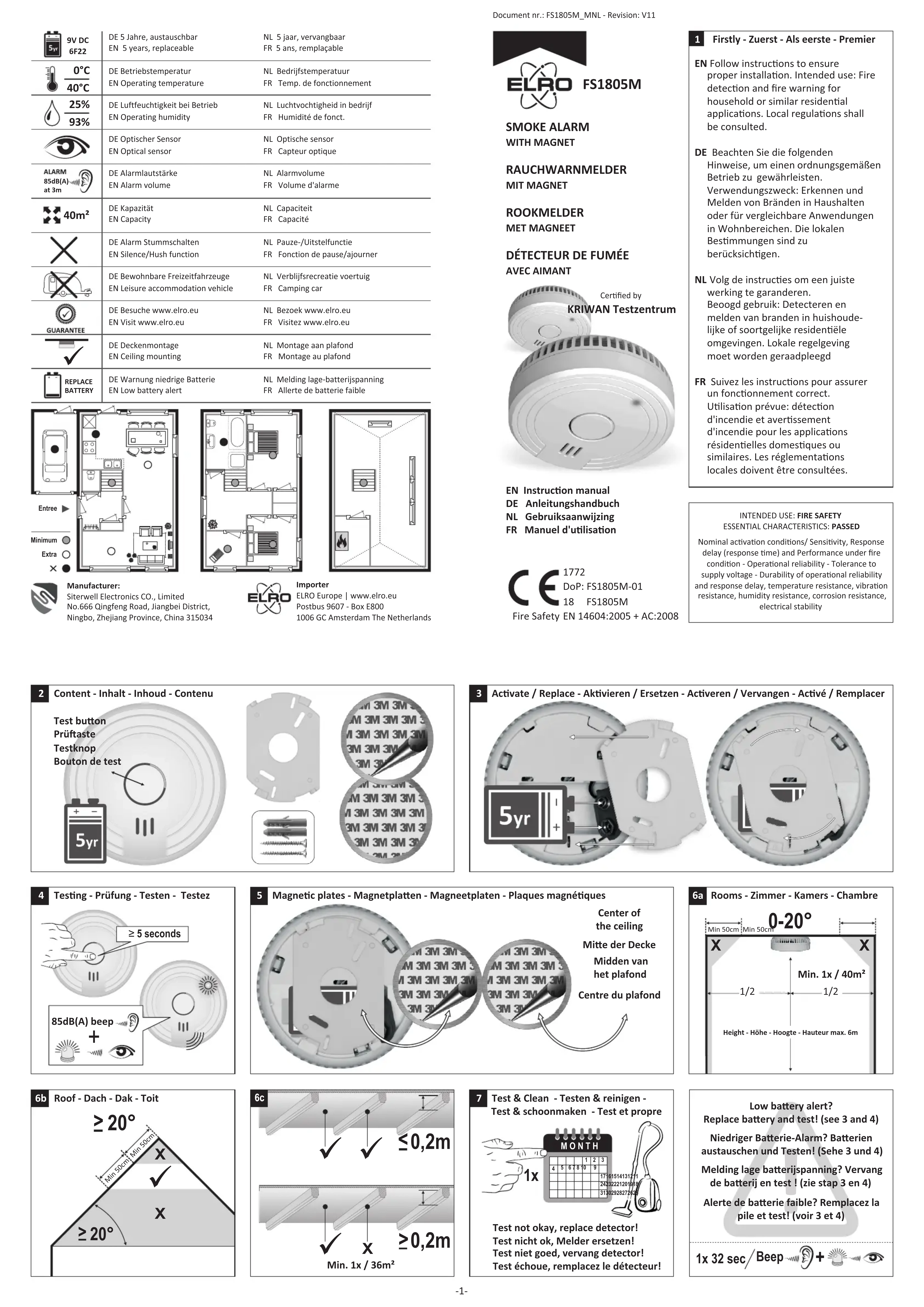 FS180521M - Détecteur de fumée ELRO - Notice d'utilisation et mode d'emploi gratuit