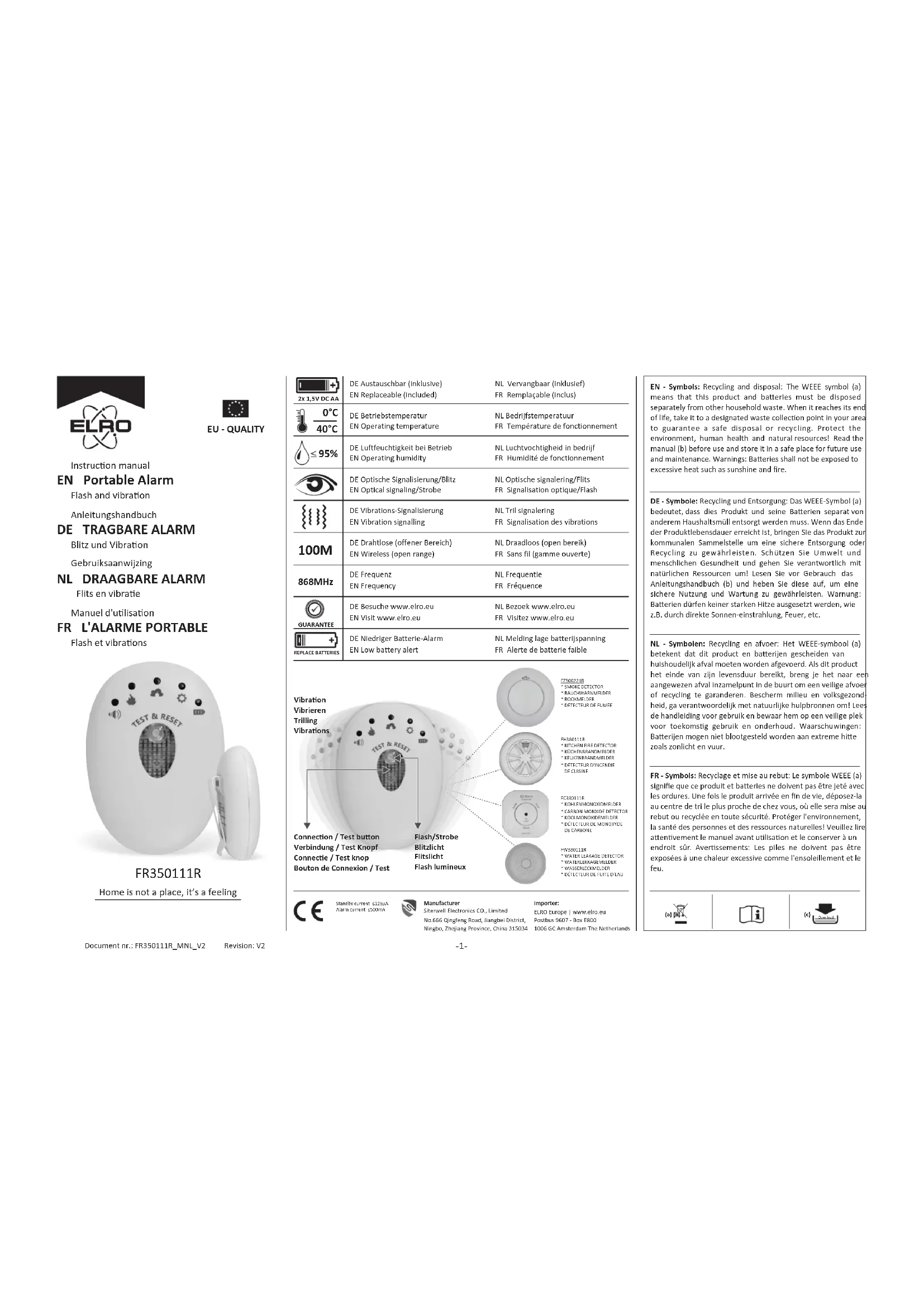 Retrouvez gratuitement la notice de l'appareil FR350111R ELRO au format PDF.