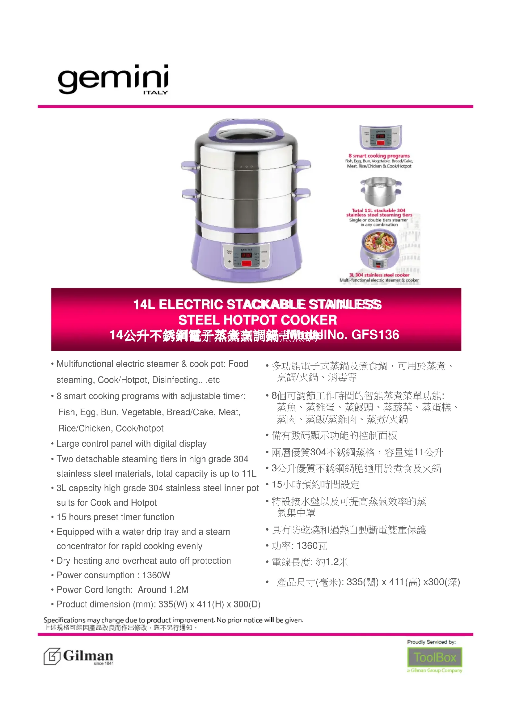 GFS136 - Appareil multi-cuisson GEMINI - Notice d'utilisation et mode d'emploi gratuit