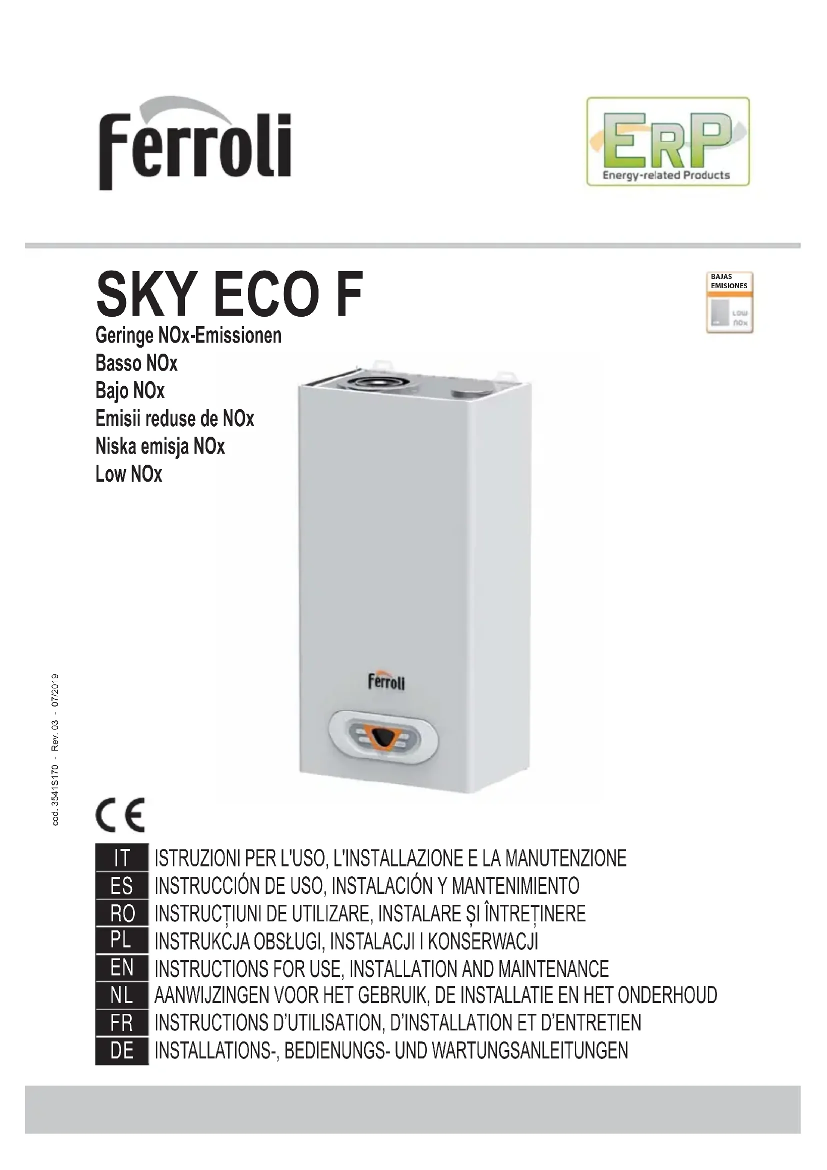Sky Eco F - Chaudière FERROLI - Notice d'utilisation et mode d'emploi gratuit