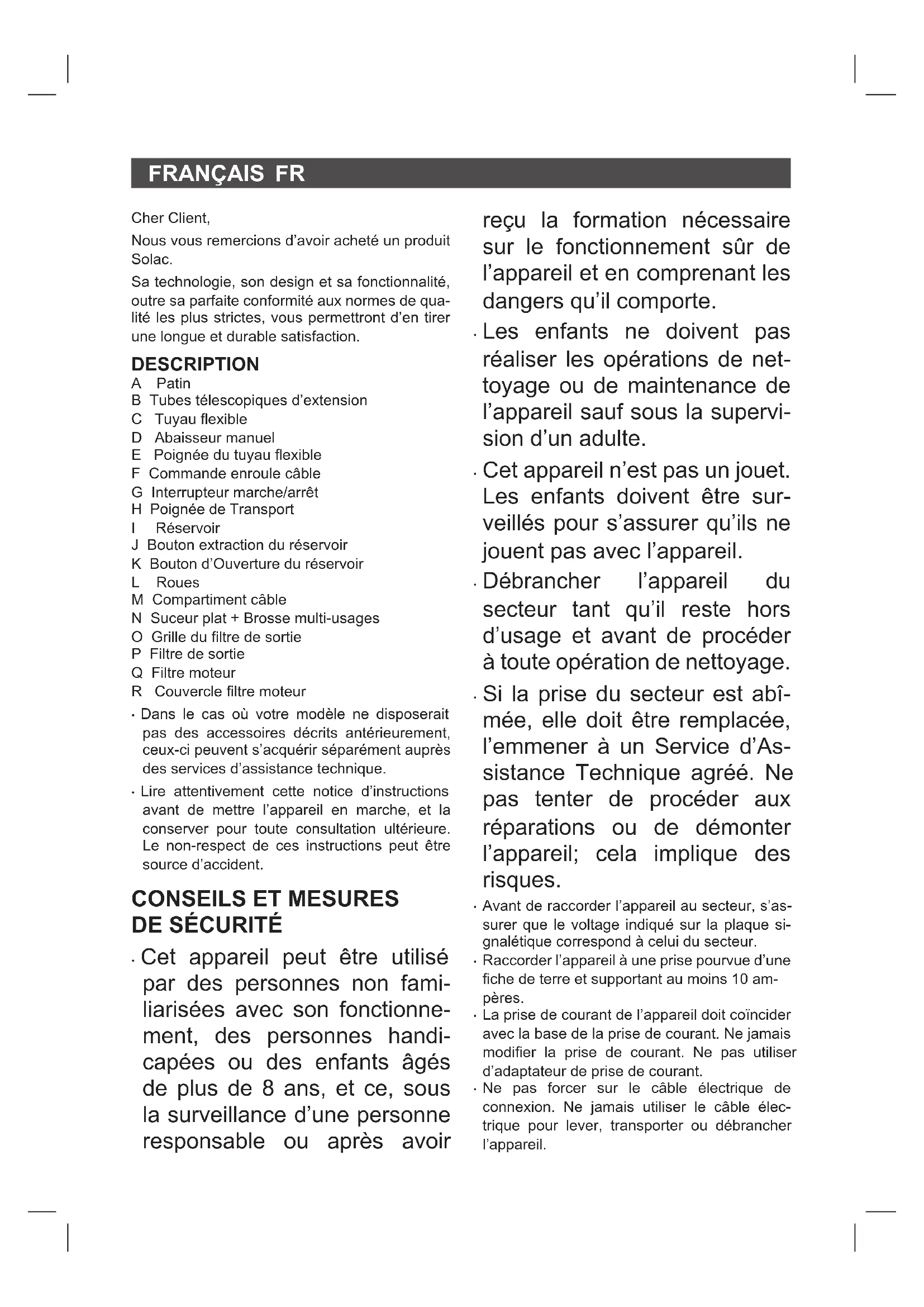 Brave AS3102 - Aspirateur SOLAC - Notice d'utilisation et mode d'emploi gratuit