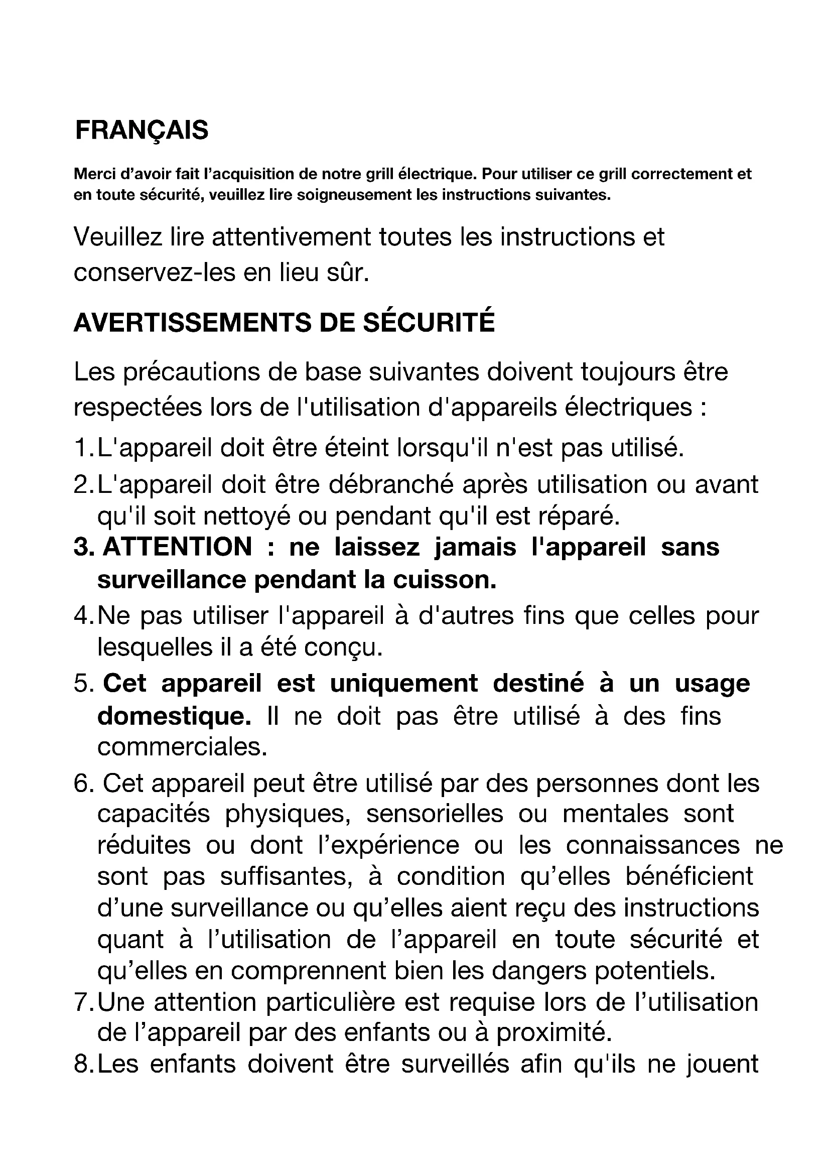 8. Les enfants doivent être surveillés afin qu'ils ne jouentpas avec l'appareil.