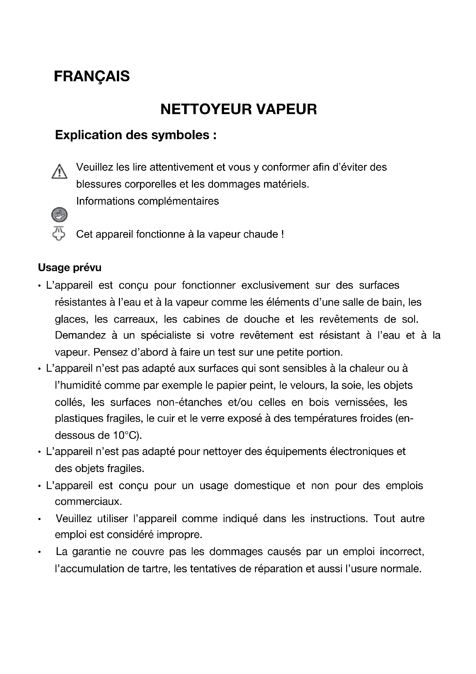 - Veuillez utiliser l’appareil comme indiqué dans les instructions. Tout autre emploi est considéré impropre.