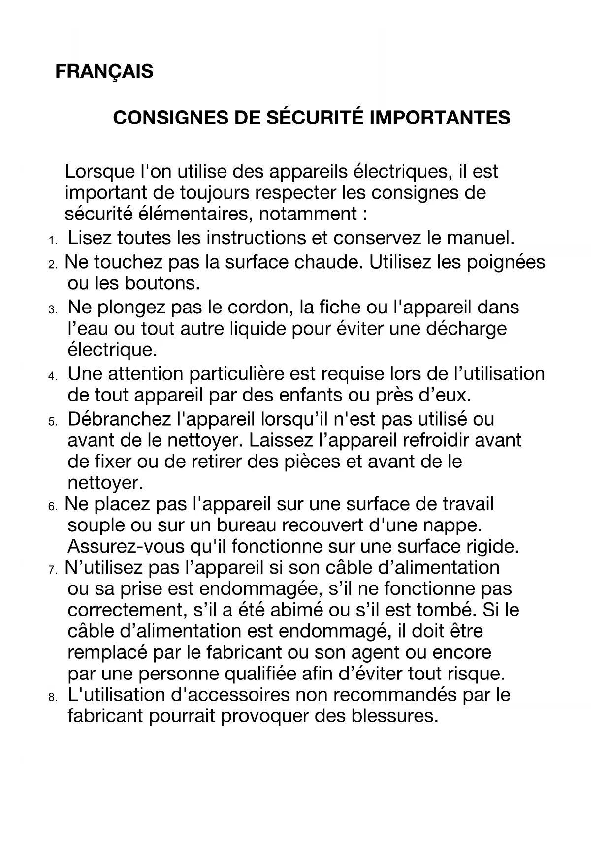 1. Lisez toutes les instructions et conservez le manuel.