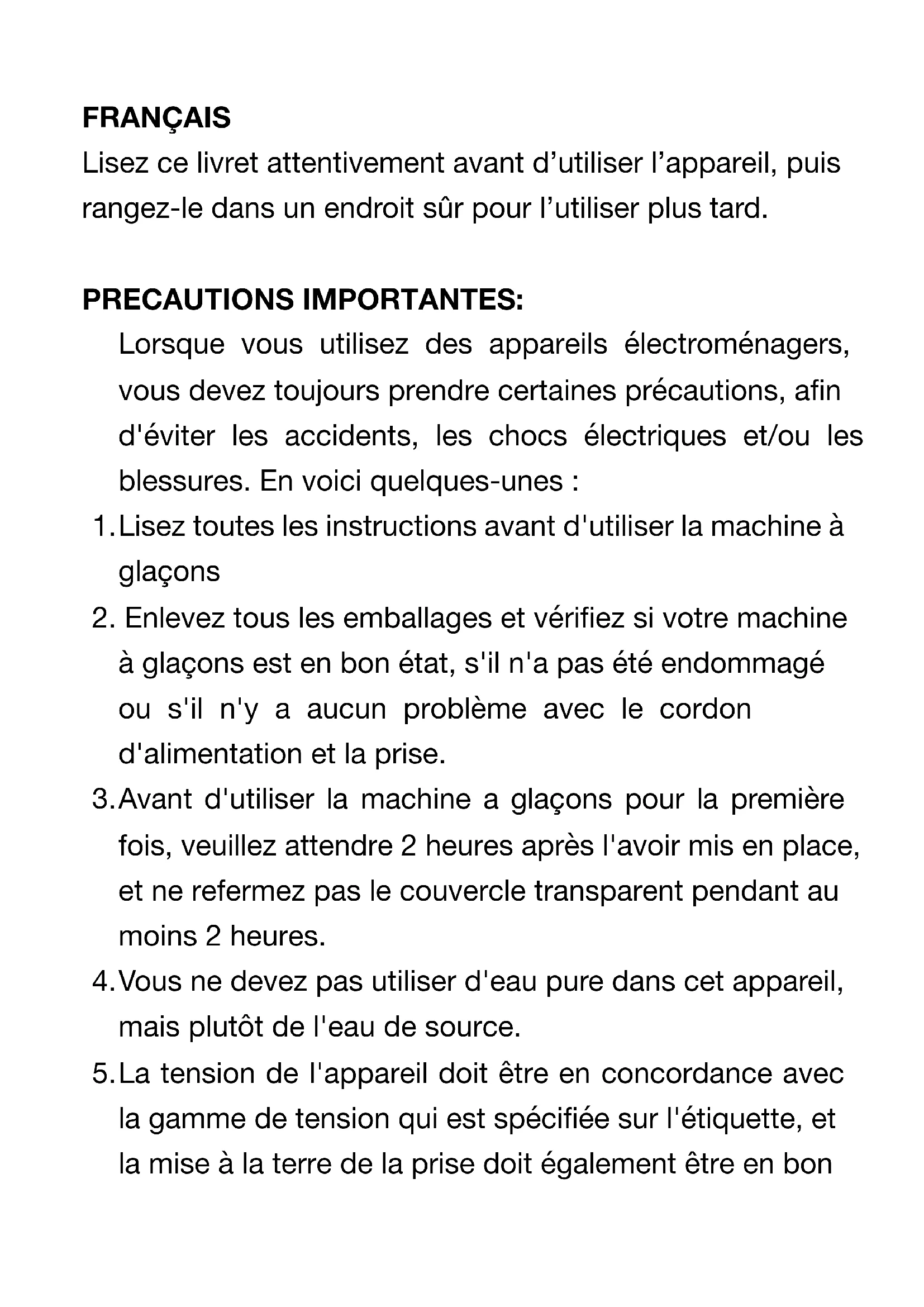 - Lisez toutes les instructions avant d'utiliser la machine à glaçons