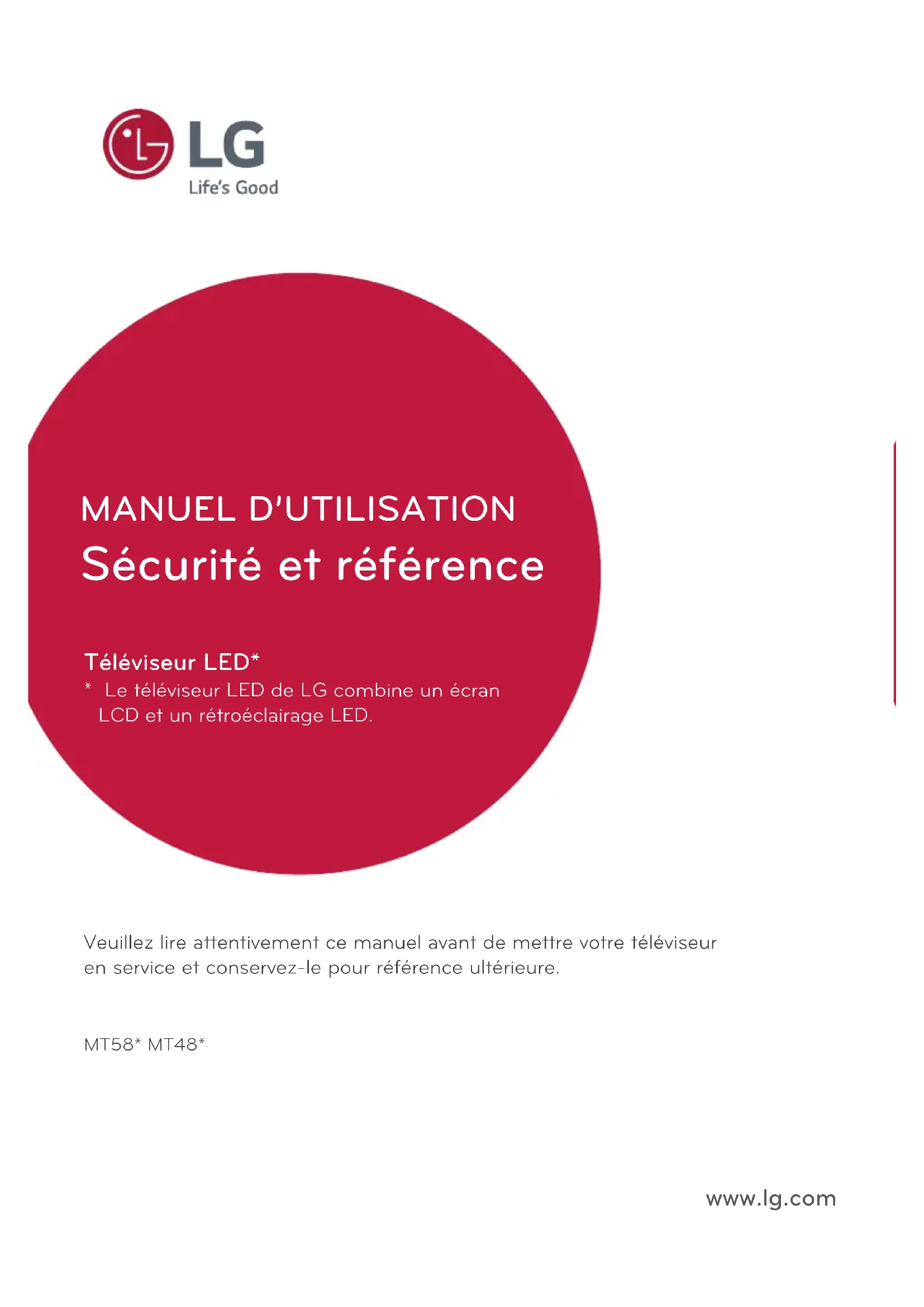 MT58* MT48* Veuillez lire attentivement ce manuel avant de mettre votre téléviseur en service et conservez-le pour référence ultérieure. www.lg.com