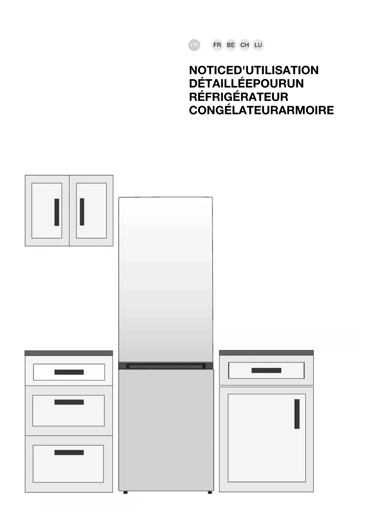 - Informations sur le bruit de l'appareil Recommandations importantes et précautions Avant d'utiliser l'appareil pour la première fois Avant de raccorder votre appareil au réseau électrique, prenez le temps de lire attentivement cette notice. Elle décrit l’appareil et la manière de s’en servir correctement en toute sécurité. Elle a été rédigée pour différents modèles et il est donc possible qu’elle décrive des fonctions et des accessoires qui ne sont pas disponibles sur votre appareil. Nous vous recommandons de conserver cette notice pour vous y référer ultérieurement et de la joindre à l'appareil si vous le vendez plus tard. Cette notice s’applique aussi au congélateur à Froid ventilé (No Frost) avec ventilateur intégré et dégivrage automatique (uniquement sur certains modèles). Vérifiez si votre appareil est en bon état. Si vous constatez qu'il est endommagé, signalez-le au revendeur à qui vous l'avez acheté. Avant de brancher l'appareil au réseau électrique, laissez-le en position verticale pendant 2 heures au moins ; vous réduirez ainsi les risques de dysfonctionnement dus à l'influence du transport et de la manutention sur le système de réfrigération. Consignes de sécurité RISQUE D'INCENDIE ! Mise en garde : risque d’incendie / matériaux inflammables. 5L’appareil doit être raccordé au réseau électrique et mis à la terre selon la règlementation et les normes en vigueur. ATTENTION ! Lorsque vous mettez l'appareil en place, veillez à ce que le cordon d'alimentation ne soit pas coincé ni endommagé. Avant de nettoyer l’appareil, déconnectez-le du réseau électrique en le débranchant de la prise secteur. RISQUE DE CHOC ÉLECTRIQUE ! ATTENTION ! Si le cordon d'alimentation est endommagé, il faut le faire remplacer par le fabricant, son service après-vente, ou des personnes de qualification similaire afin d'éviter tout danger. RISQUE DE CHOC ÉLECTRIQUE ! ATTENTION ! Lorsque vous positionnez l’appareil, veillez à ce que le cordon d’alimentation ne soit pas coincé ou endommagé. RISQUE DE CHOC ÉLECTRIQUE ! Si l'éclairage LED ne fonctionne pas, faites appel à un technicien du service après-vente. N'essayez pas de le réparer vous-même, car vous risqueriez d'entrer en contact avec un courant à haute tension. ATTENTION ! ATTENTION : n’utilisez pas d’appareils électriques dans le réfrigérateur ou le congélateur, exceptés ceux autorisés par le fabriquant de ce produit. 6ATTENTION ! ATTENTION : pour accélérer le dégivrage de l’appareil, n’utilisez aucun accessoire mécanique ni aucun autres moyen que ceux recommandés par le constructeur. ATTENTION ! ATTENTION : pour éviter tout risque dû à une stabilité insuffisante, veillez à installer l'appareil comme indiqué dans la notice. Risque de brûlures dues au froid Ne portez pas à la bouche d'aliments congelés et évitez de les toucher, car le froid extrême peut causer des brûlures. Sécurité des enfants et des personnes vulnérables Cet appareil n’est pas prévu pour les personnes (y compris les enfants) disposant de capacités physiques, sensorielles ou mentales réduites, ou manquant d’expérience et de connaissances. Elles ne pourront l’utiliser que sous la surveillance d'un adulte responsable de leur sécurité et après avoir été mises au courant de son fonctionnement. Surveillez les enfants pour qu'ils ne jouent pas avec l'appareil. Les enfants ne doivent pas non plus procéder sans surveillance à son nettoyage et à son entretien. Retirez l’emballage qui protégeait l’appareil ou certaines de ses pièces durant le transport et gardez-le hors de la portée des enfants, car il présente un risque de suffocation. Lorsque vous mettrez l'appareil au rebut, débranchez le câble secteur, enlevez les portes, mais laissez les clayettes en place : cela empêchera les enfants de s'enfermer à l'intérieur. 7Uniquement pour les marchés européens Cet appareil peut être utilisé par des enfants de 8 ans et plus ainsi que par des personnes ayant un handicap physique, sensoriel ou mental et par des personnes inexpérimentées, à condition qu’une personne responsable de leur sécurité les surveille et qu'ils aient reçu les instructions nécessaires et compris les dangers. Les enfants ne doivent pas jouer avec l'appareil. Les enfants ne doivent pas non plus procéder sans surveillance à son nettoyage et à son entretien. Les enfants de 3 à 8 ans peuvent sortir les aliments des appareils frigorifiques ou les ranger à l'intérieur. Mise en garde concernant le réfrigérant L'appareil contient une petite quantité de gaz R600a, respectueux de l'environnement mais inflammable. Veillez à ne pas endommager le système de réfrigération. Une fuite de gaz ne nuirait pas à l'environnement mais pourrait occasionner des lésions oculaires et s'enflammer. En cas de fuite de gaz réfrigérant, aérez bien la pièce, débranchez l'appareil du réseau électrique et contactez le service après-vente. Recommandations importantes concernant l'utilisation de l'appareil ATTENTION ! Cet appareil est destiné à un usage domestique et aux applications similaires telles que : p. 4
