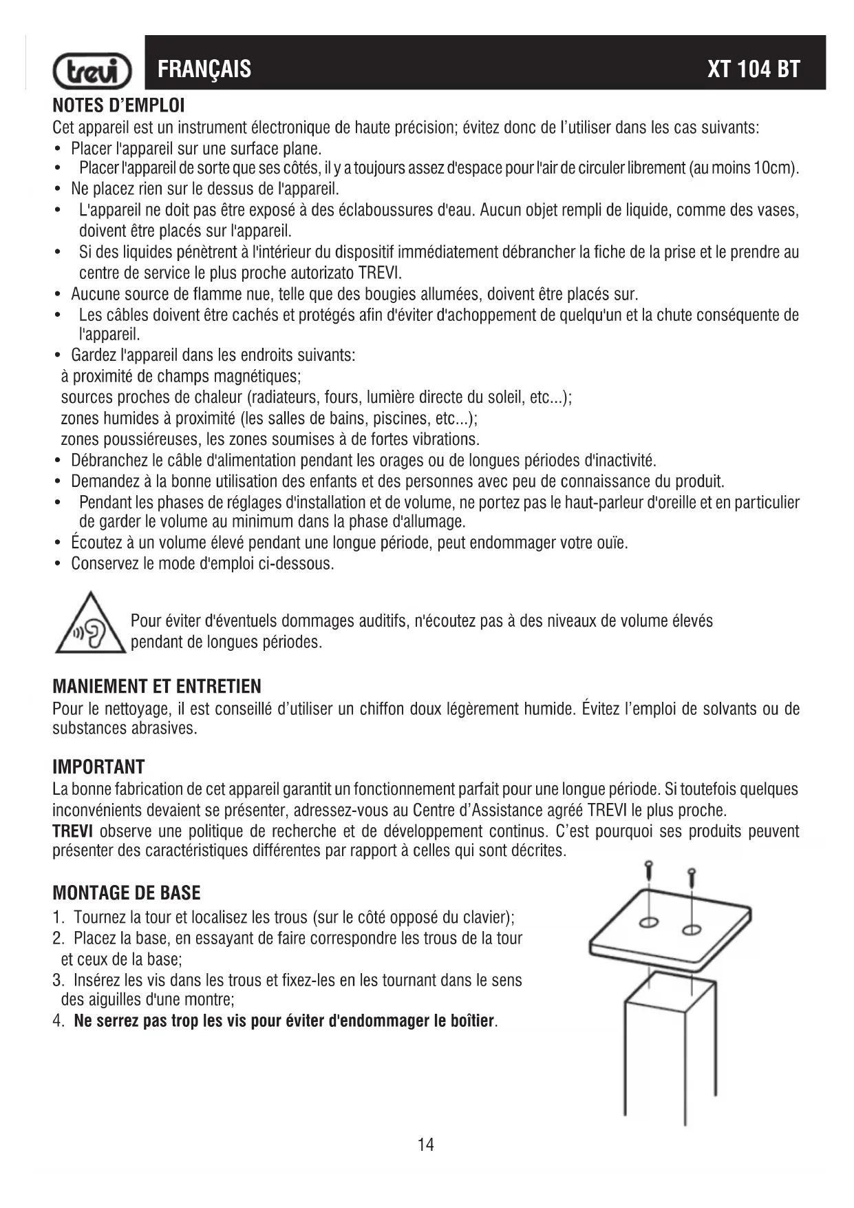 Retrouvez gratuitement la notice de l'appareil XT 104 BT Trevi au format PDF.
