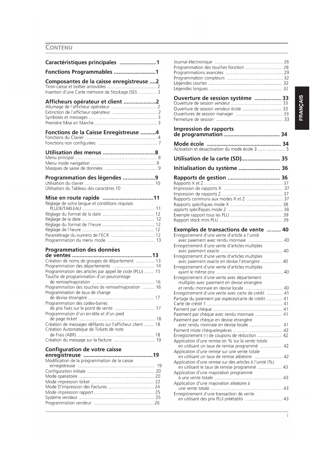 - Impression de rapports Z p. 37
