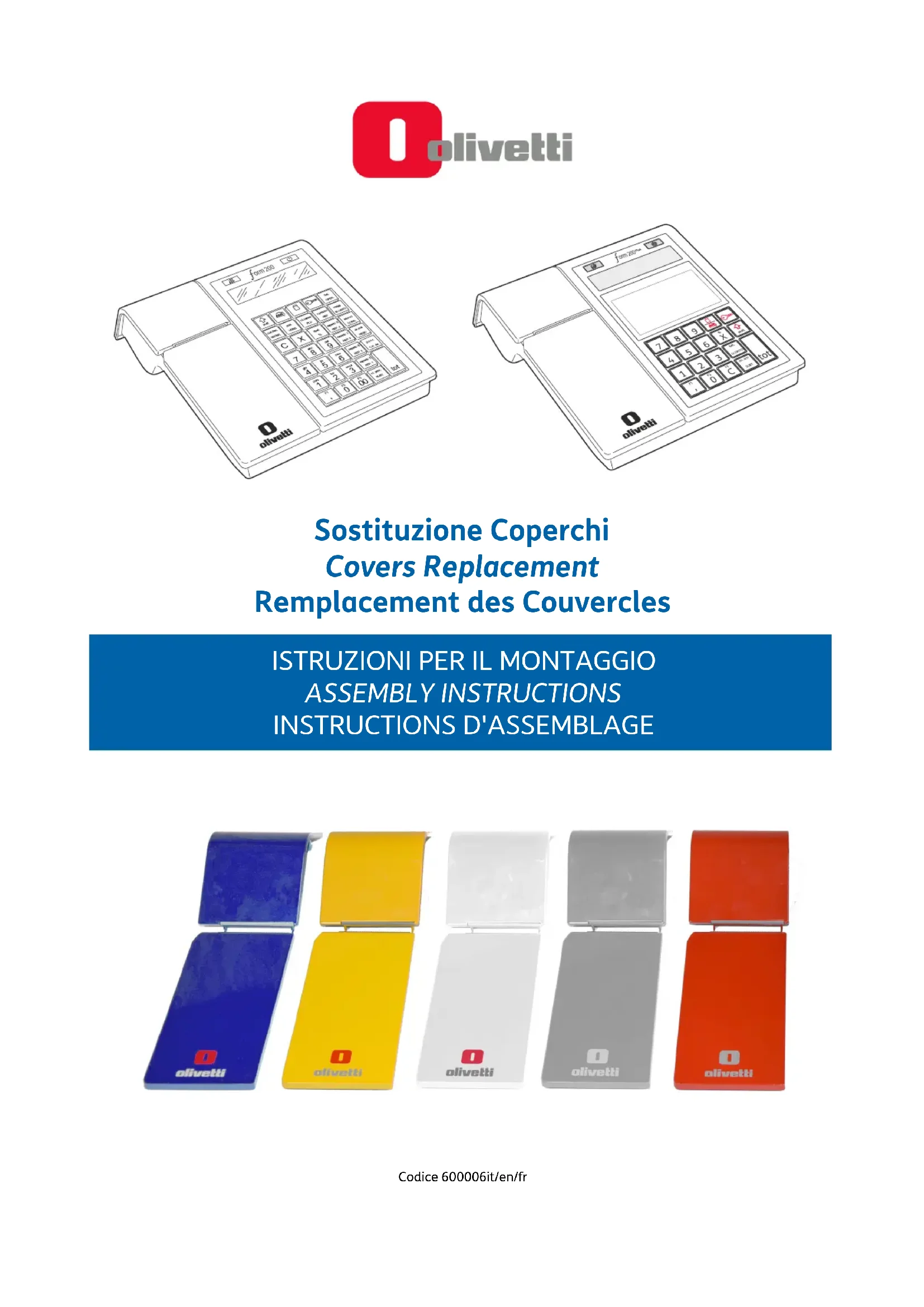 Ce manuel décrit les opérations de remplacement des couvertures de la caisse enregistreuse Form 200. Nous vous prions de poser attention sur les actions suivantes qui peuvent compromettre la conformité ci-dessus attesté des caractéristiques du produit: