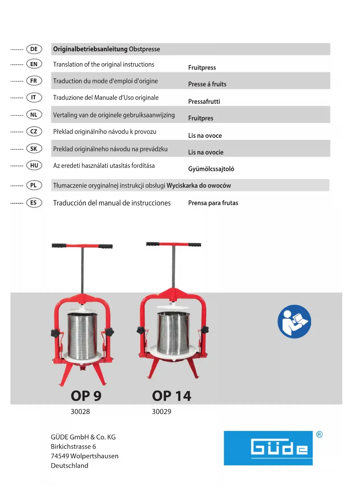 OP 9 - Presse à fruits Güde - Notice d'utilisation et mode d'emploi gratuit