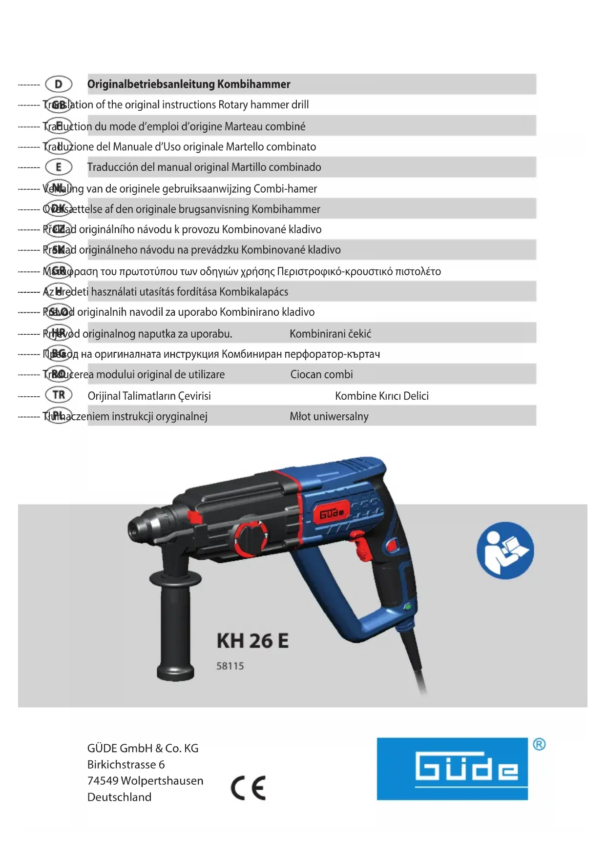 KH 26 E - Marteau Güde - Notice d'utilisation et mode d'emploi gratuit
