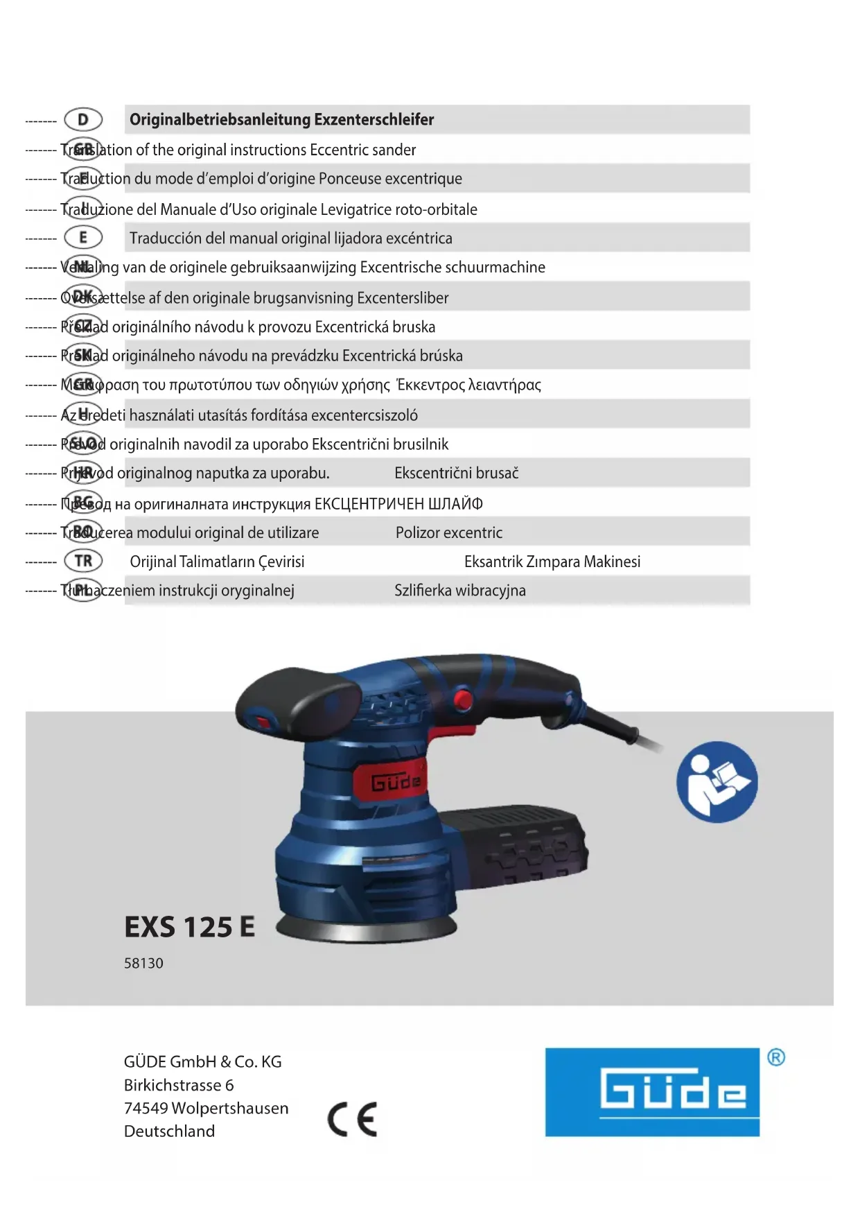 Retrouvez gratuitement la notice de l'appareil EXS 125 E Güde au format PDF.