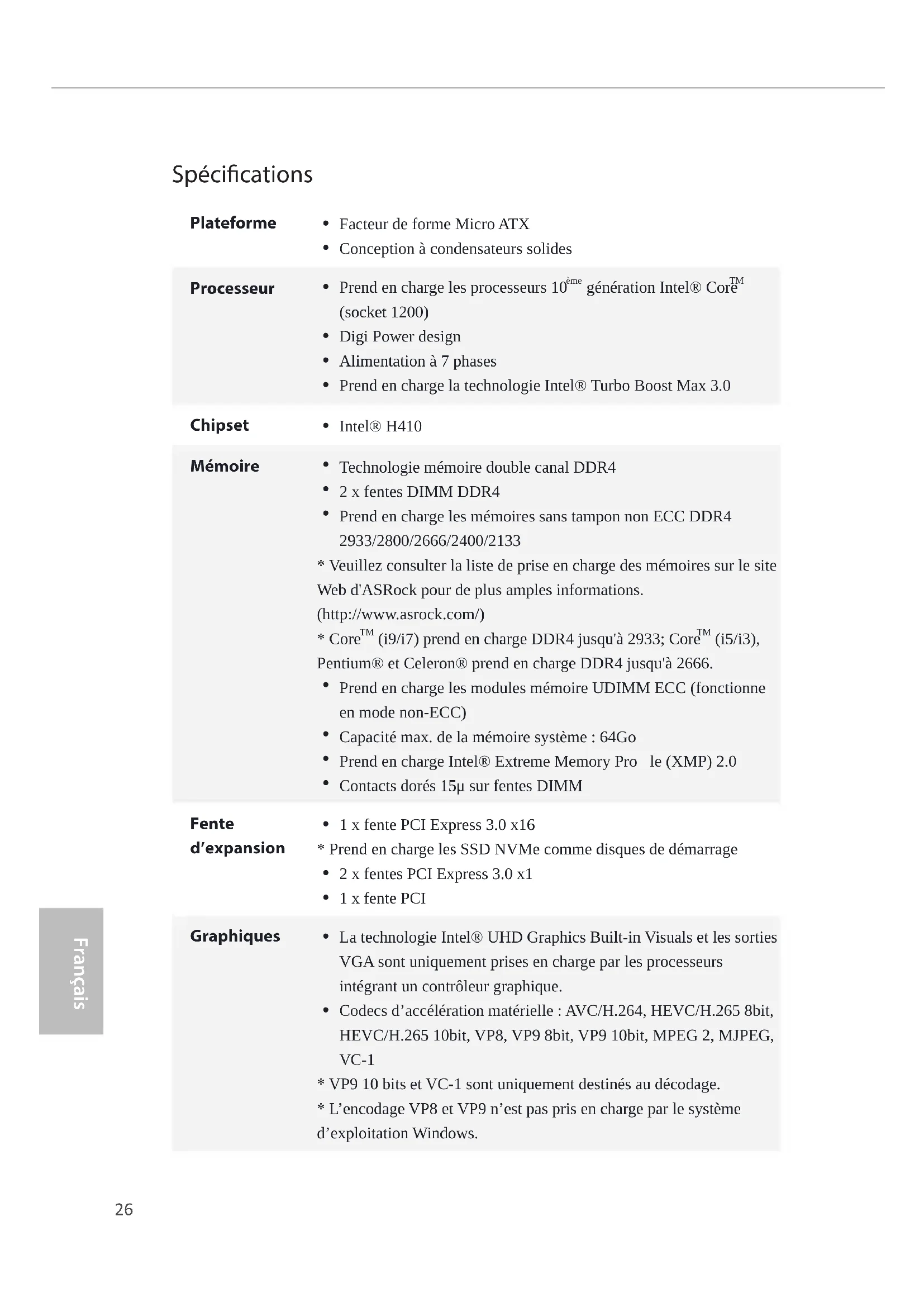 - L’encodage VP8 et VP9 n’est pas pris en charge par le système d’exploitation Windows.27 H410M-HDVP H410M-HDVP2 Français