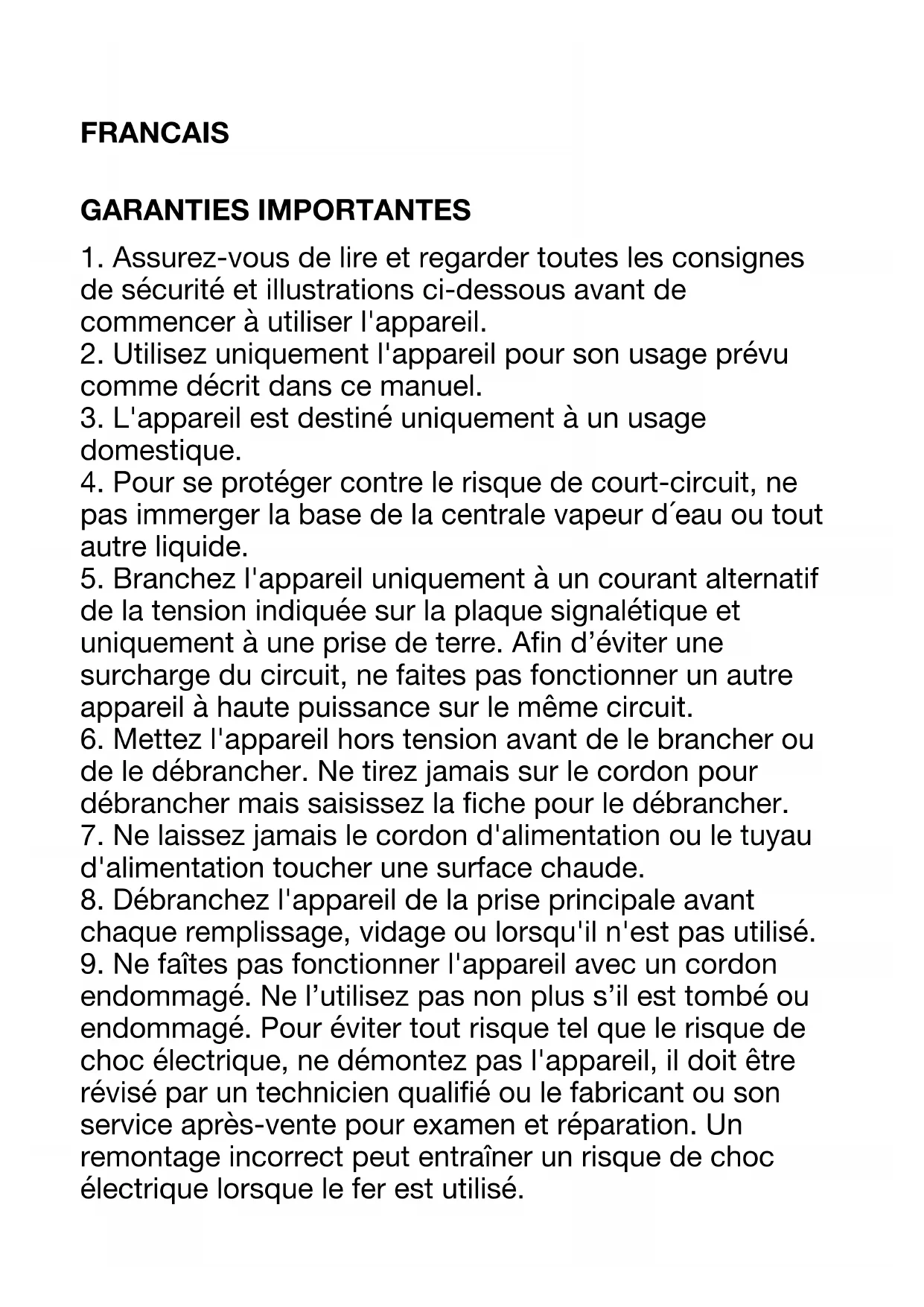 20. Le fer ne doit pas être utilisé en cas de chute, de fuite