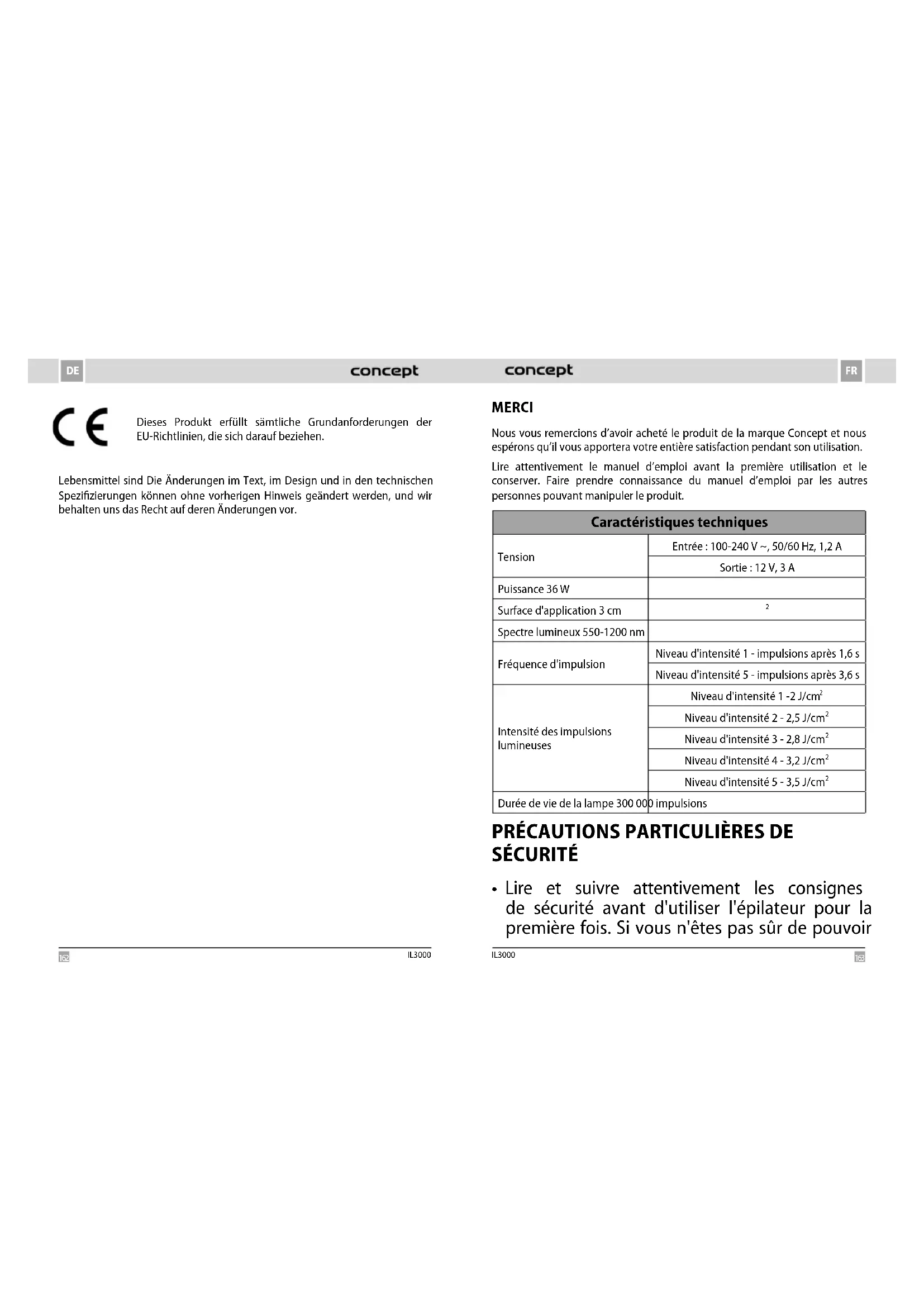 Perfect Skin IL3000 - épilateur à lumière pulsée Concept - Notice d'utilisation et mode d'emploi gratuit