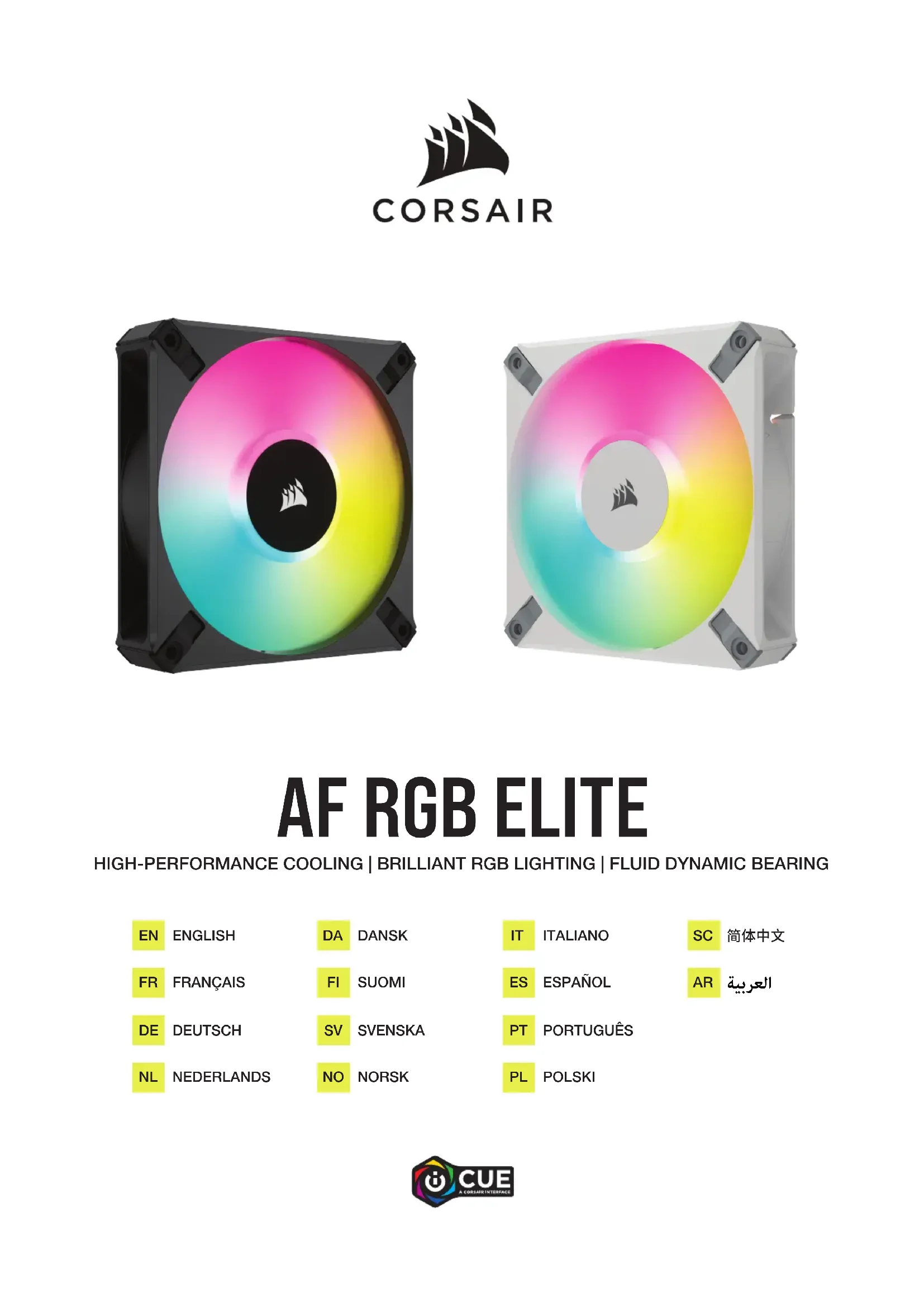 Trouvez un emplacement suffisamment spacieux pour le Lighting Node CORE afin que tous les câbles des LED RGB des ventilateurs atteignent le Lighting Node CORE, puis installez-le avec les bandes de fixation fournies. FRONT SIDE TOP REAR2 FRANÇAIS FRANÇAIS CONFIGURATION iCUE Cliquez sur l’image pour télécharger la dernière version du logiciel iCUE de CORSAIR. Une fois iCUE installé, sélectionnez «8-LED Fan Series» dans la page de configuration Lighting dans Lighting Node CORE Veuillez consulter notre CORSAIR LAB pour toute configuration iCUE supplémentaire.