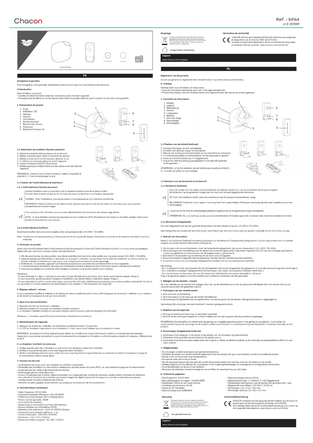84164 - Sonnette de portes CHACON - Notice d'utilisation et mode d'emploi gratuit