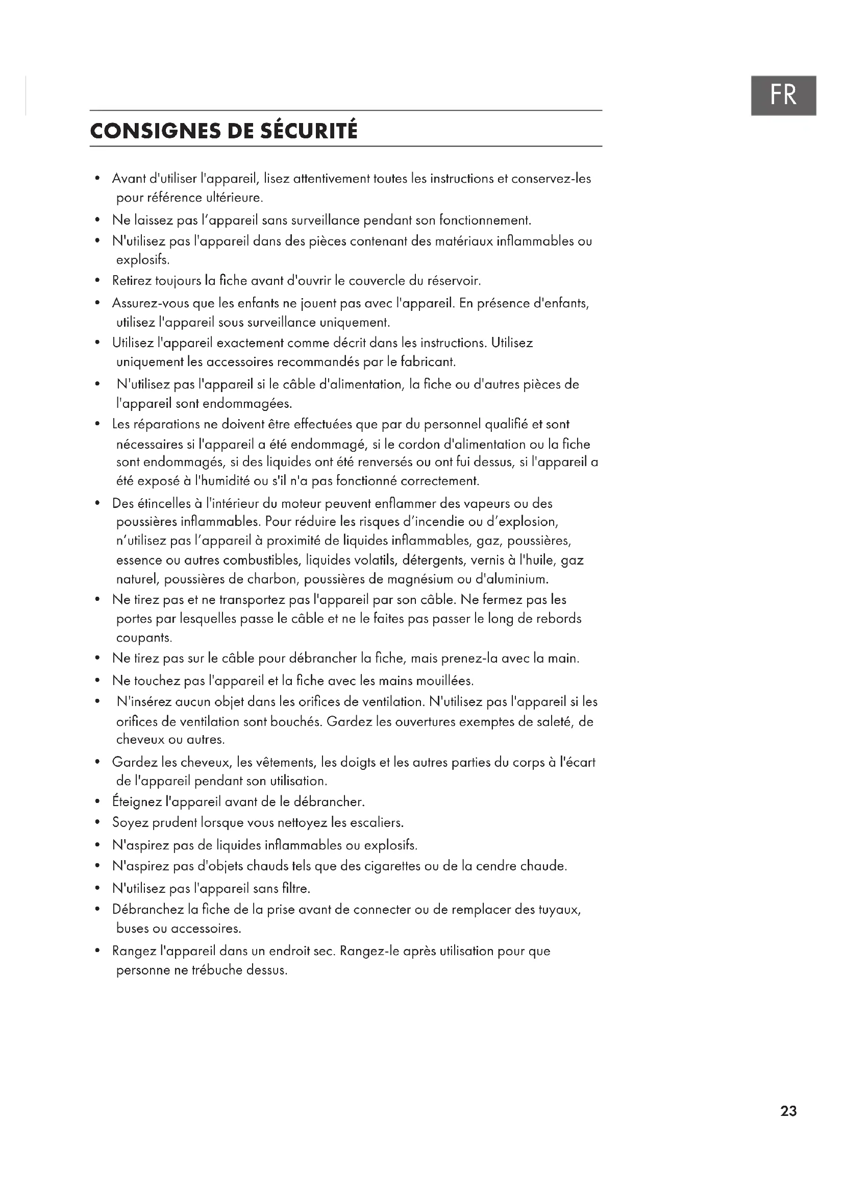 - N'aspirez pas de liquides inammables ou explosifs.