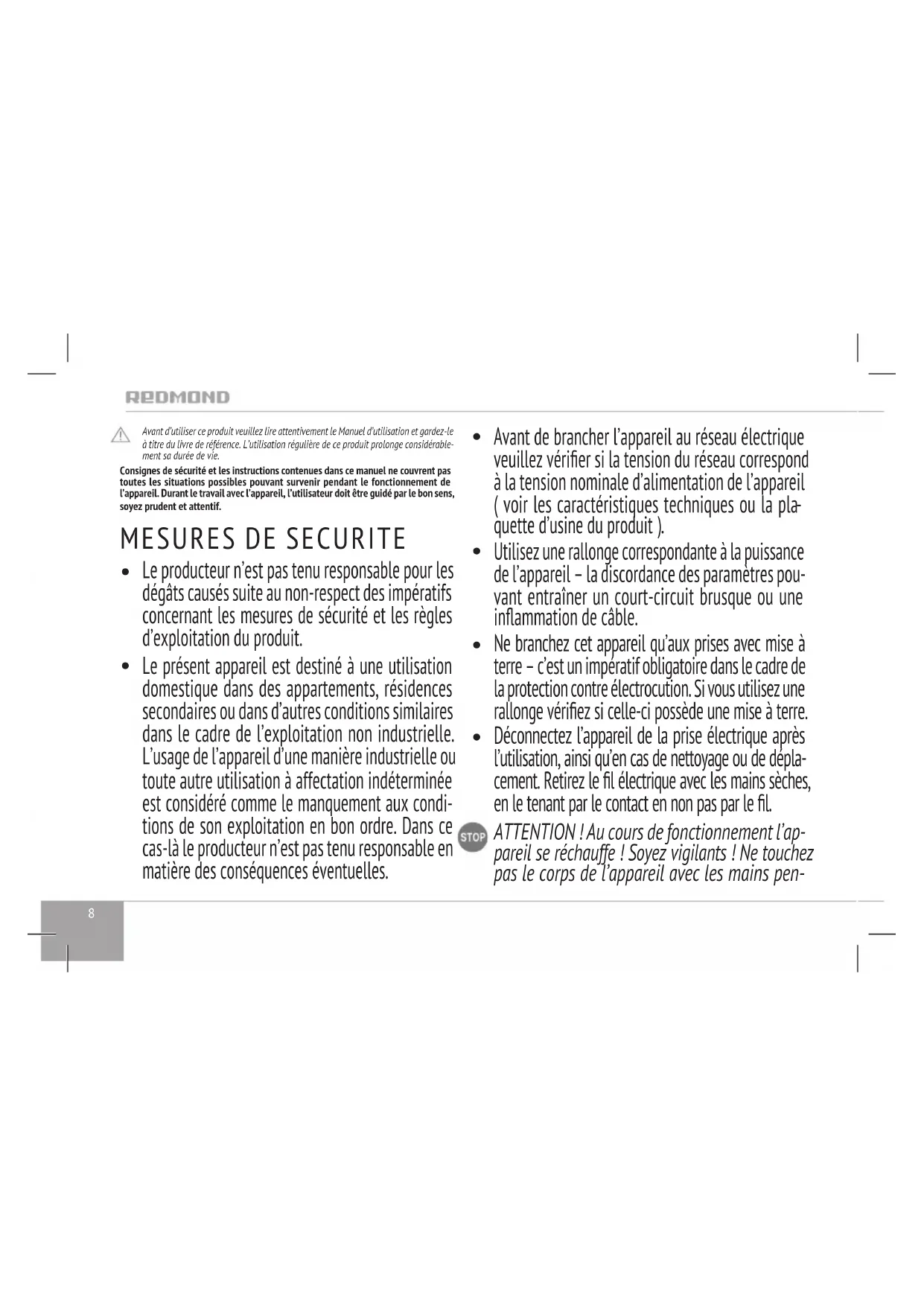 MODE D'EMPLOI RKM124E Redmond