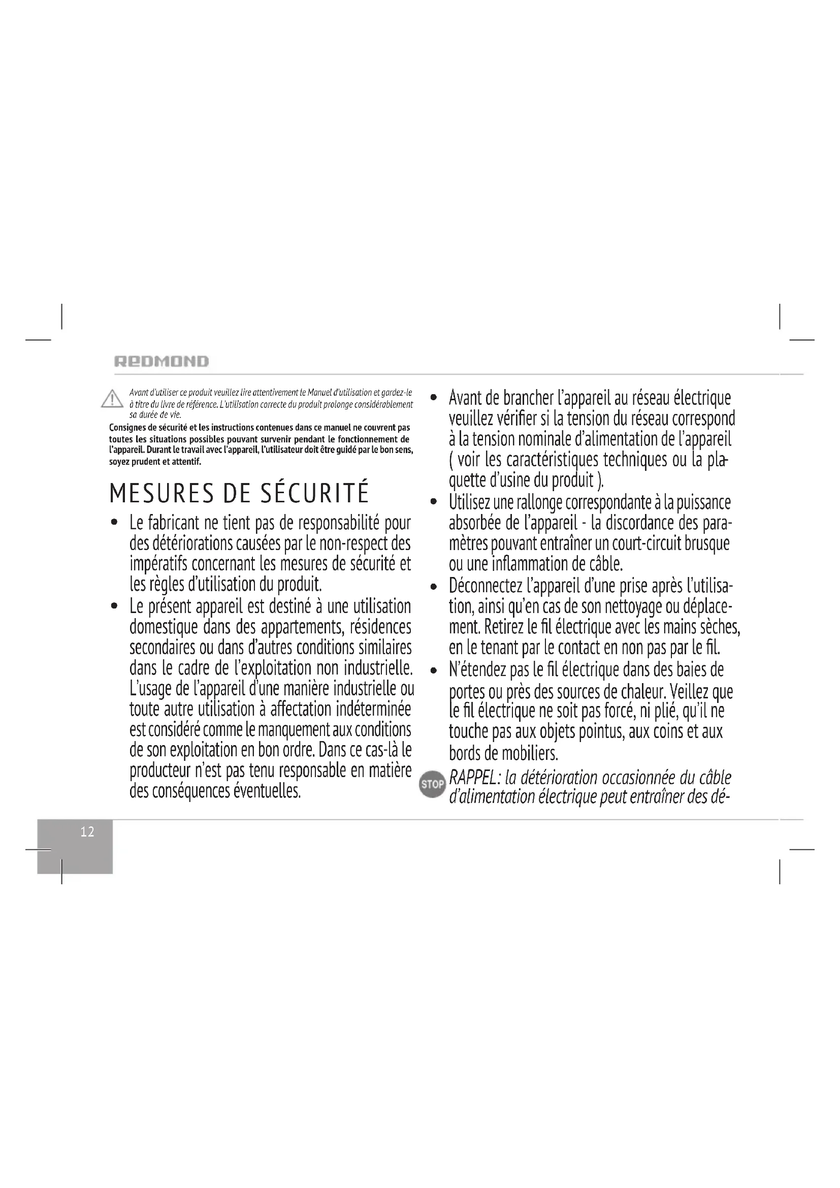 Retrouvez gratuitement la notice de l'appareil RHB2942E Redmond au format PDF.