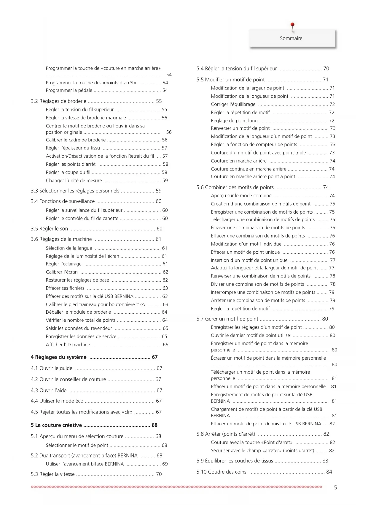 Enregistrer les réglages d’un motif de point .................. 80 Ouvrir le dernier motif de point utilisé .......................... 80 Enregistrer un motif de point dans la mémoire personnelle ..................................................................
