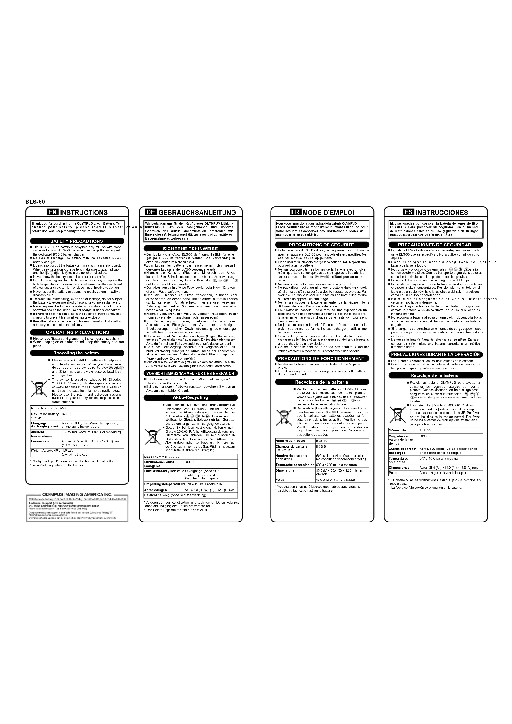 BLS50 - Batterie OLYMPUS - Notice d'utilisation et mode d'emploi gratuit