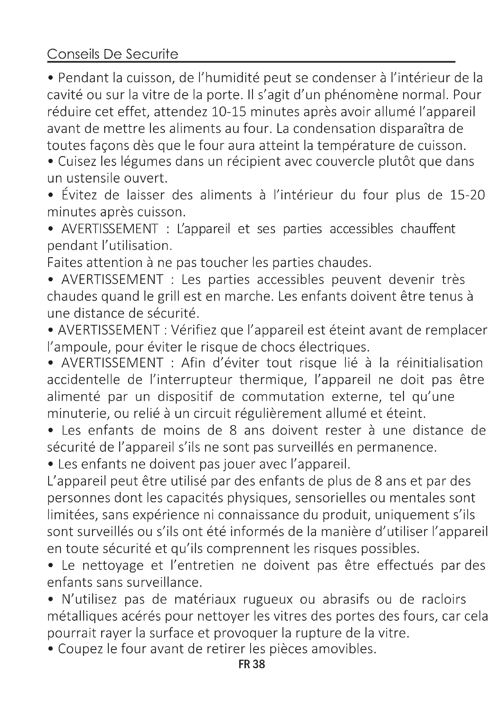- Le nettoyage et l’entretien ne doivent pas être effectués par des enfants sans surveillance. Conseils De Securite FR 38• Après le nettoyage, remontez-les selon les instructions.