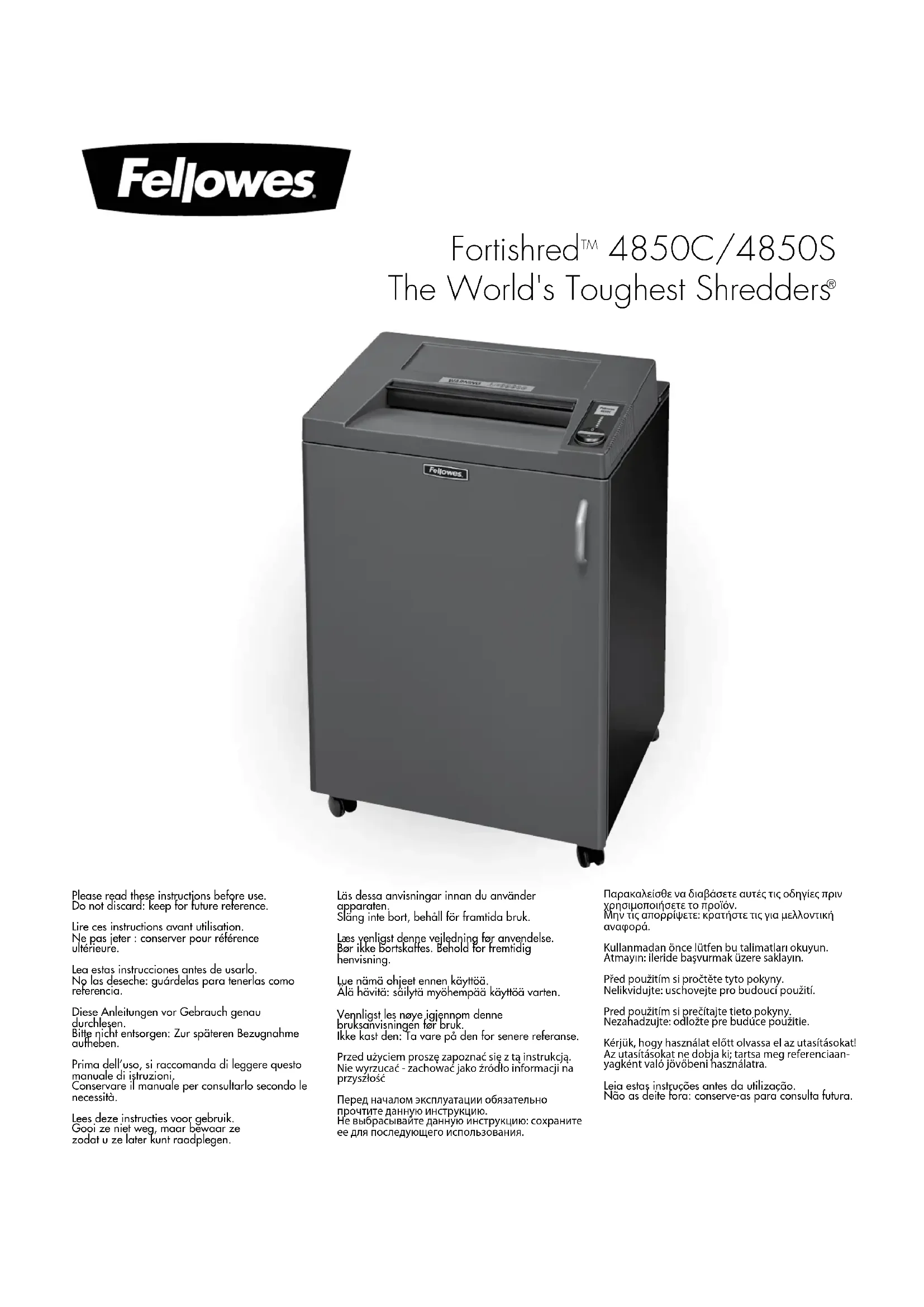 Retrouvez gratuitement la notice de l'appareil Fortishred 4850C FELLOWES au format PDF.