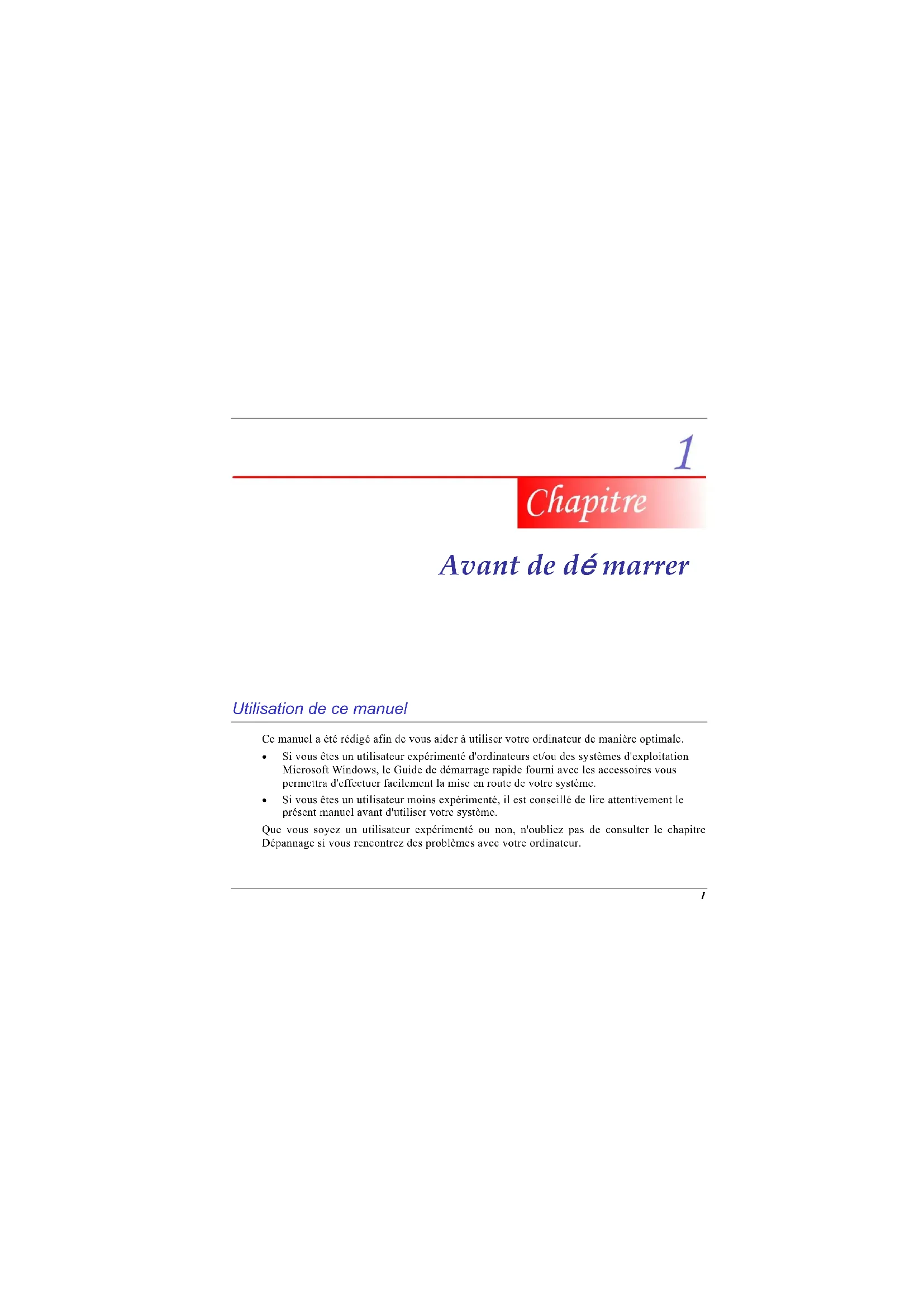 marrer Utilisation de ce manuel Ce manuel a été rédigé afin de vous aider à utiliser votre ordinateur de manière optimale.