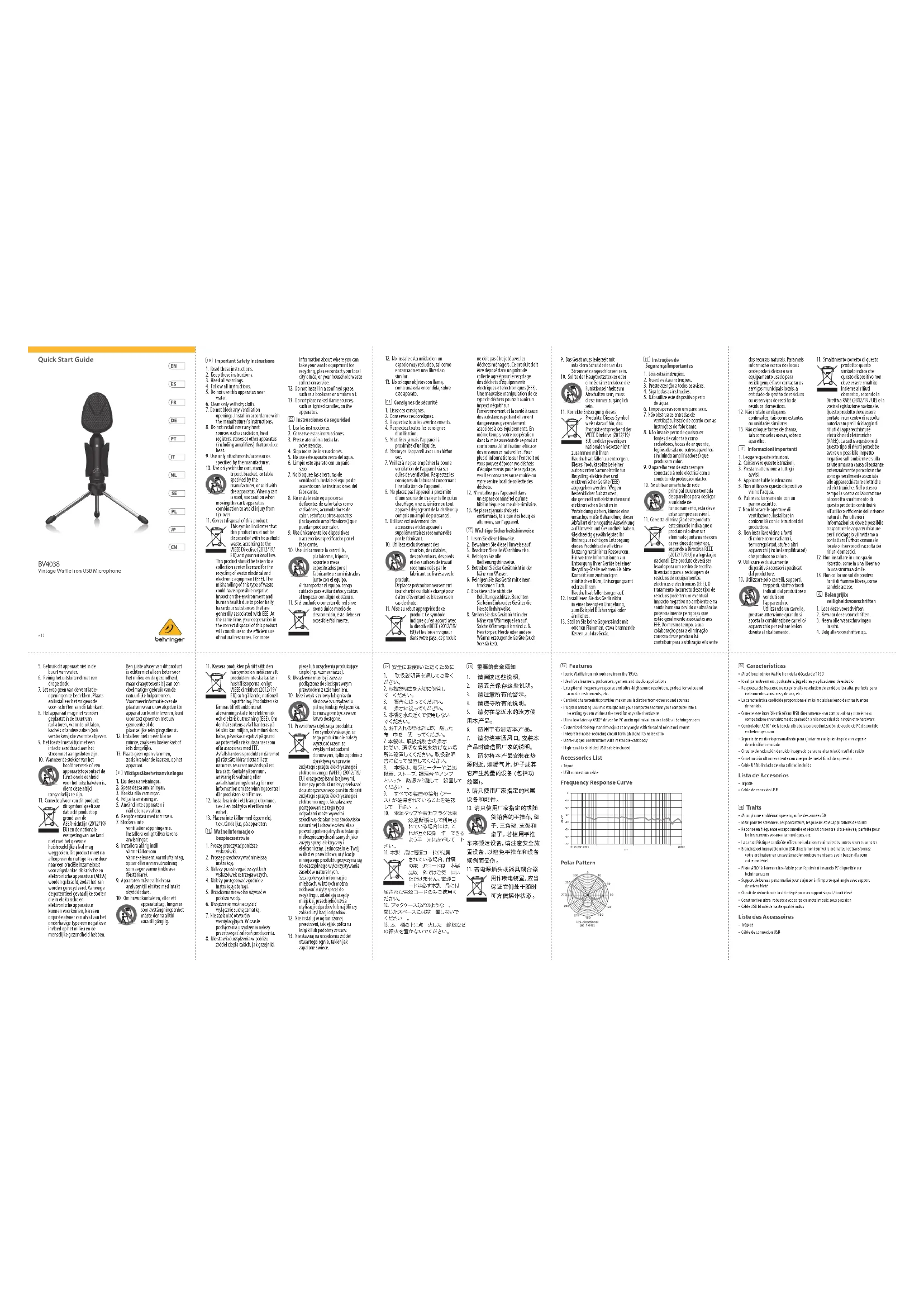 Téléchargez la notice de votre Microphone au format PDF gratuitement ! Retrouvez votre notice BV4038 - BEHRINGER et reprennez votre appareil électronique en main. Sur cette page sont publiés tous les documents nécessaires à l'utilisation de votre appareil BV4038 de la marque BEHRINGER.