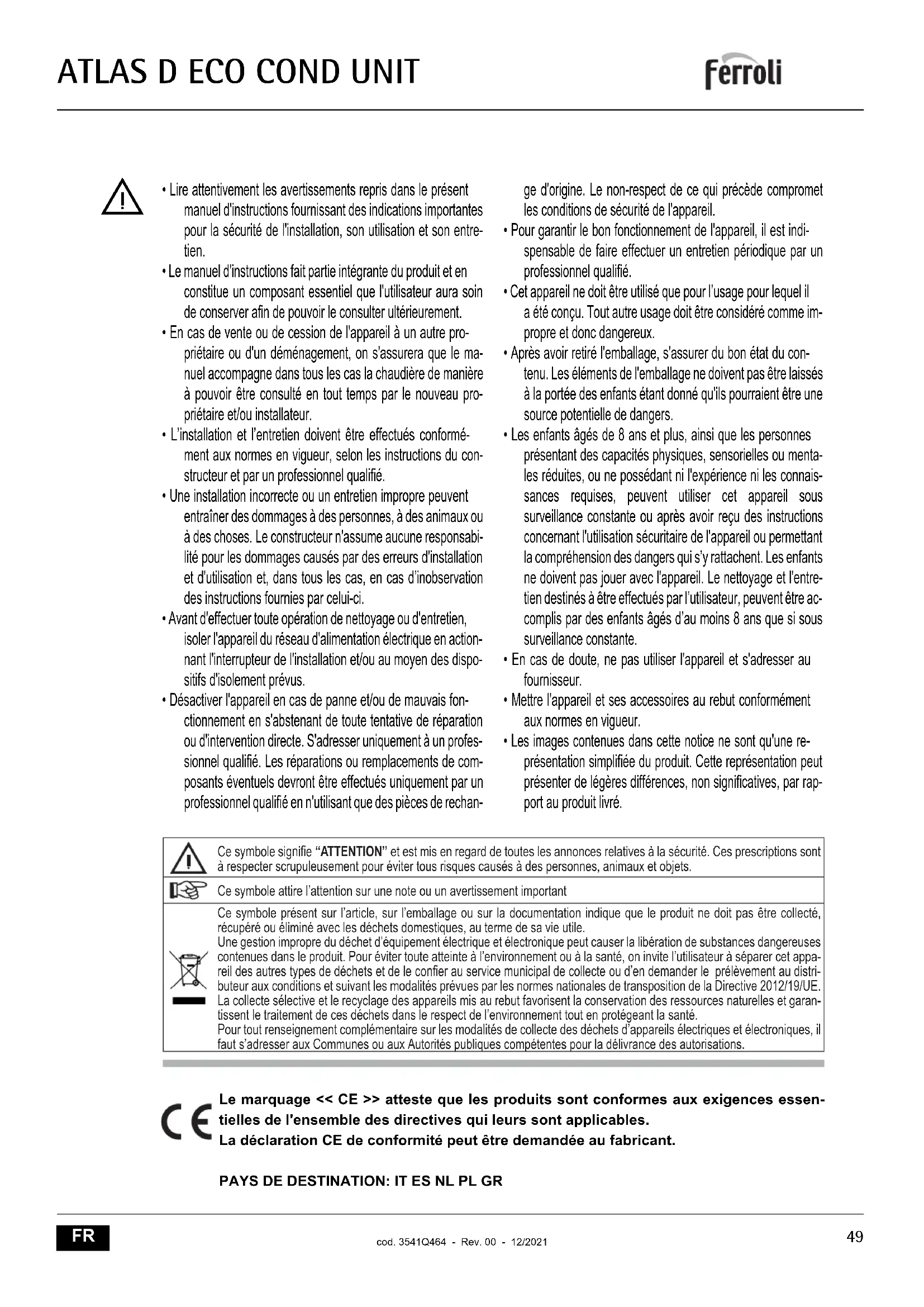 MODE D'EMPLOI Atlas D Eco Cond Unit FERROLI