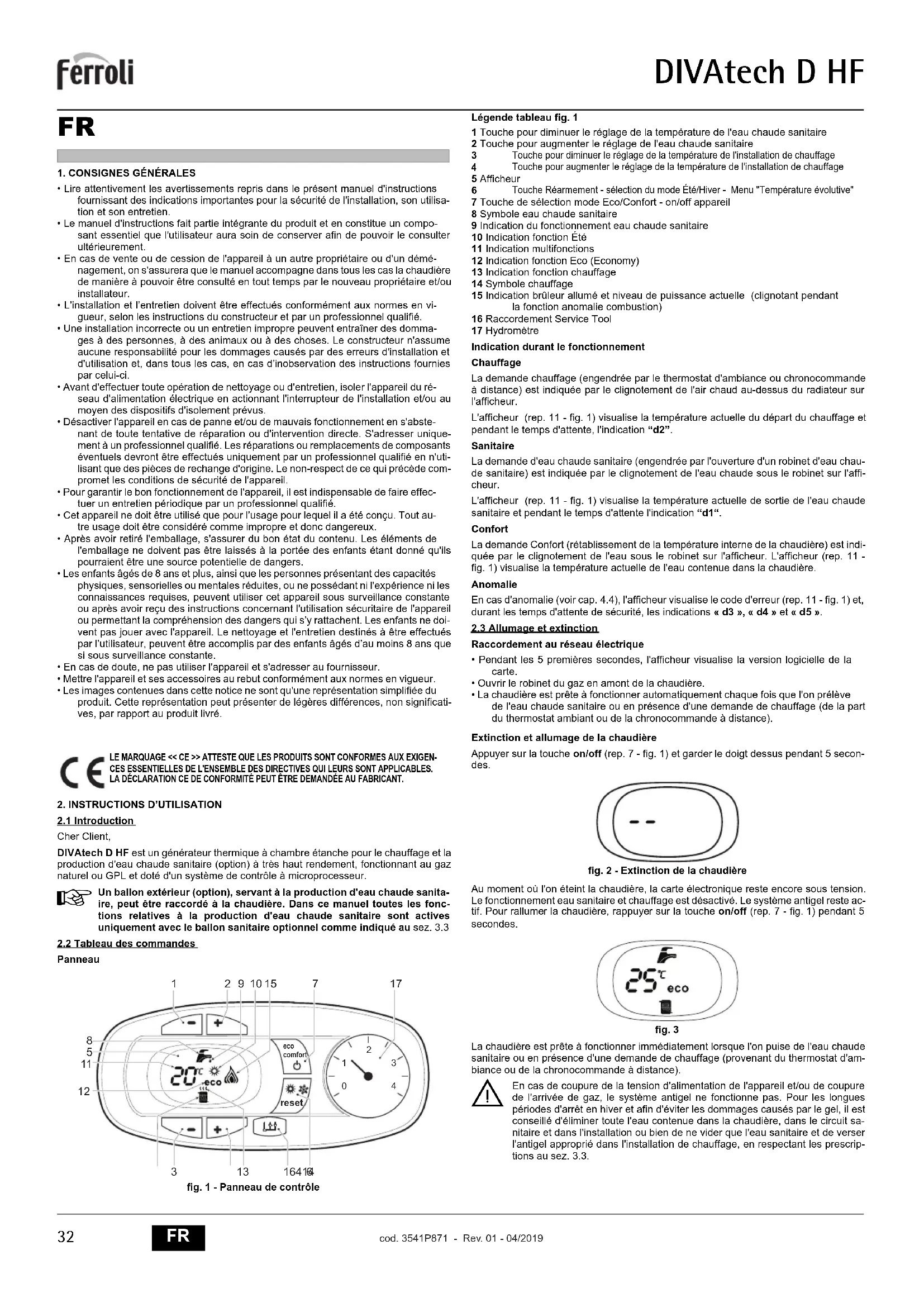 Divatech D - Chaudière de chauffage central FERROLI - Notice d'utilisation et mode d'emploi gratuit