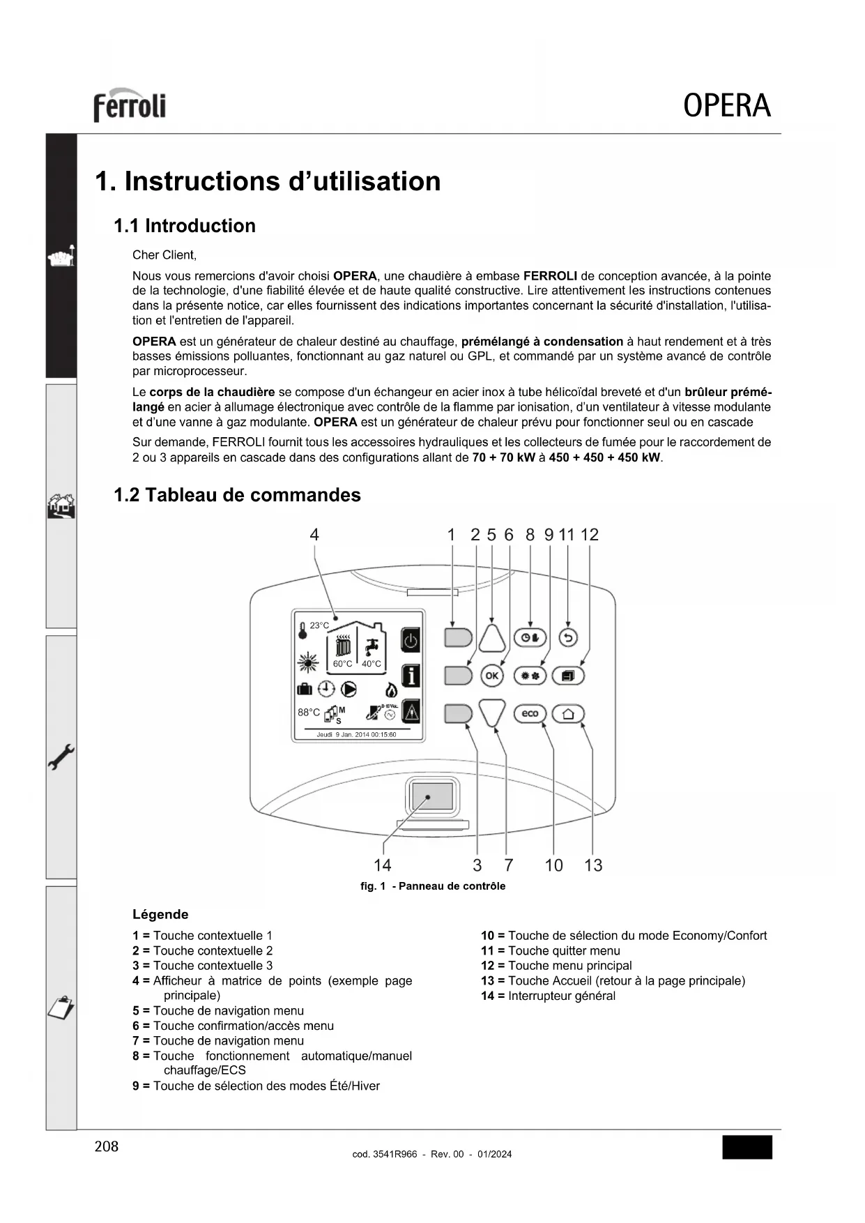 Retrouvez gratuitement la notice de l'appareil Opera FERROLI au format PDF.