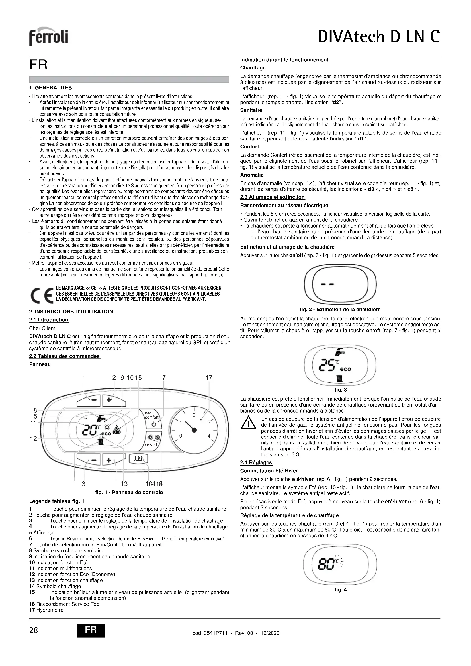 DIVAtech D LN C24 - Chaudière de chauffage central FERROLI - Notice d'utilisation et mode d'emploi gratuit