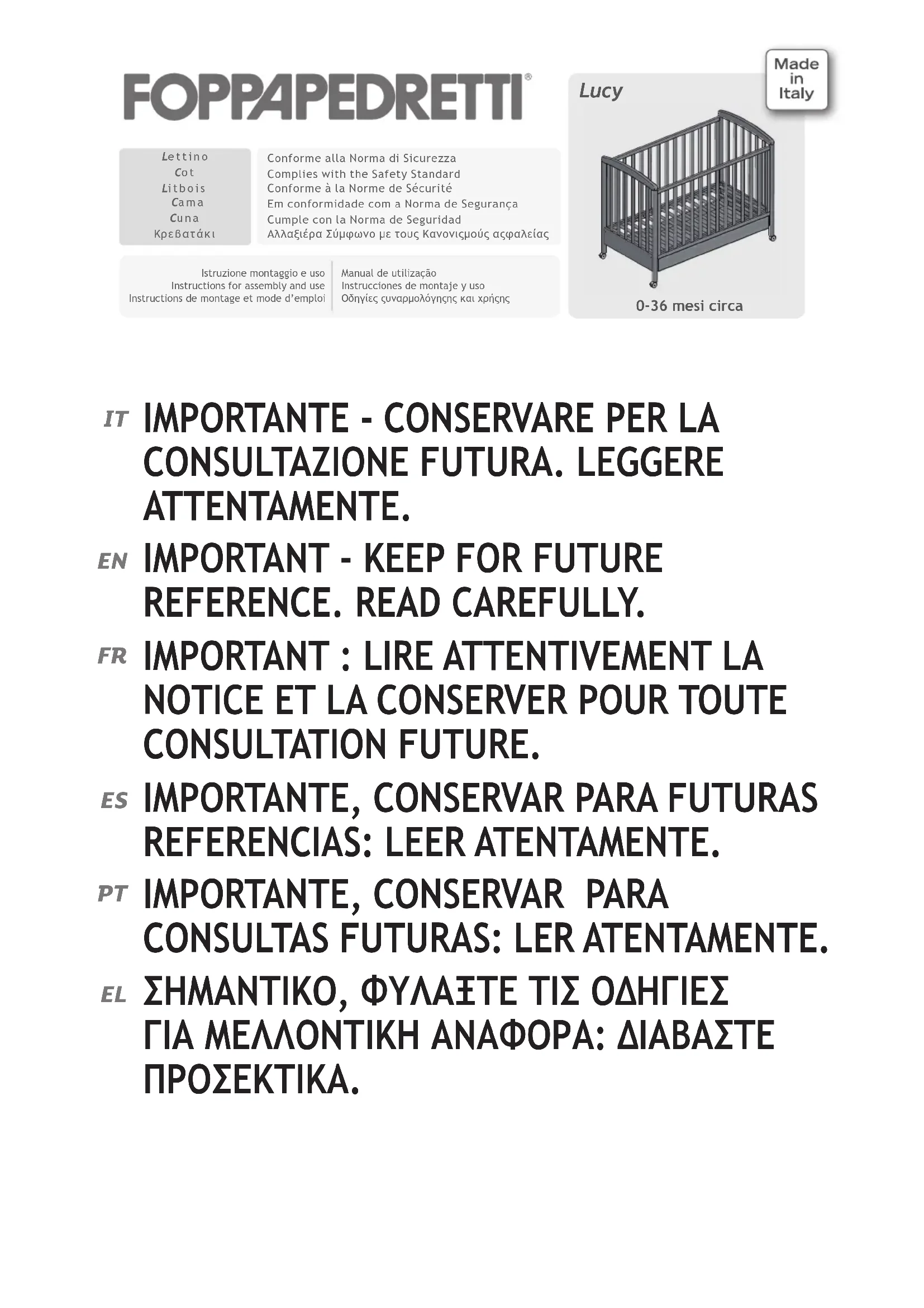 Lucy grigi - Lit bébé Foppapedretti - Notice d'utilisation et mode d'emploi gratuit