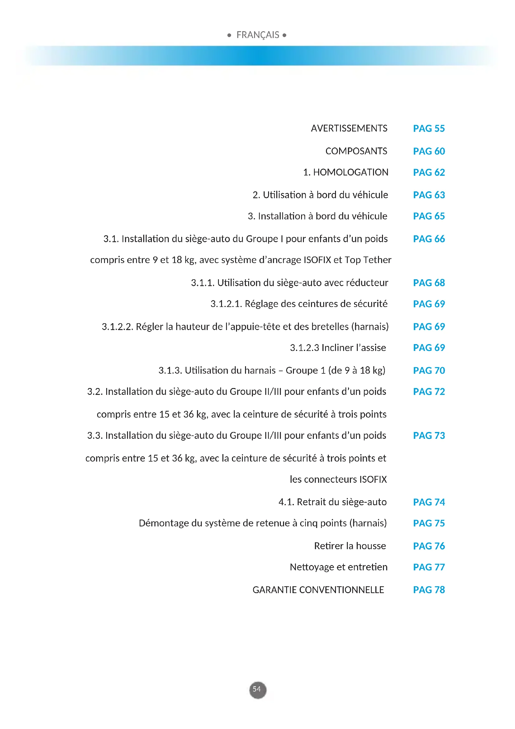 - AVERTISSEMENT : En cas de doutes concernant l’installaon et la bonne ulisaon du siège-auto, contacter le fabricant du disposif de retenue pour enfants. AVANT UTILISATION